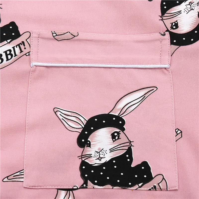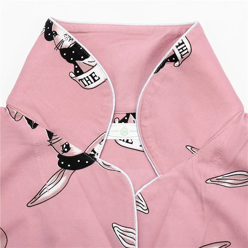 Lovely Rabbit Pajamas Set 2020 Women Spring Summer Cotton Homewear Cartoon Pajamas Full Pants Plus Size Female Sleepwear L-4XL