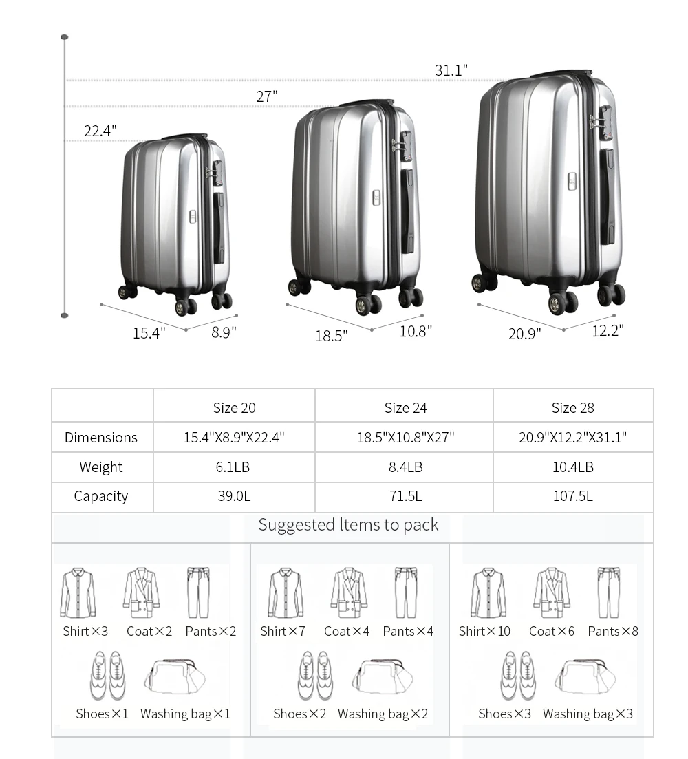 Luggage Sets Hardside with Spinner Wheels 3 Piece 20″ 24″ 28″ Water Resistant Suitcase Lightweight P