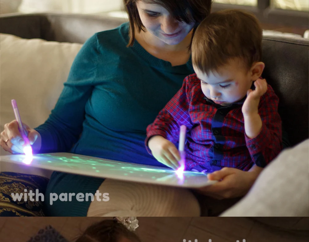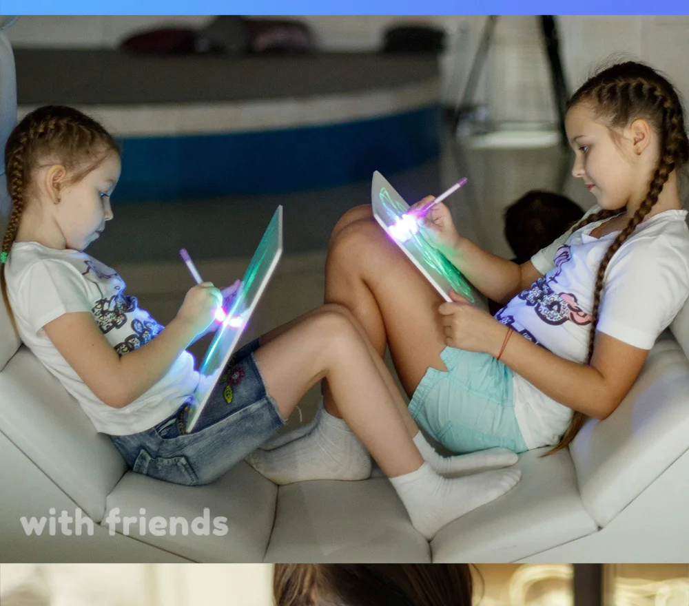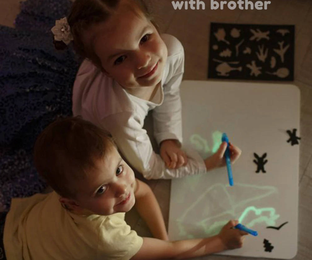 1. A set of “Draw with light” will help the child to reveal his creative potential, but at the same time, furniture and wallpaper in your apartment will not be “decorated” with patterns and hand-writing.