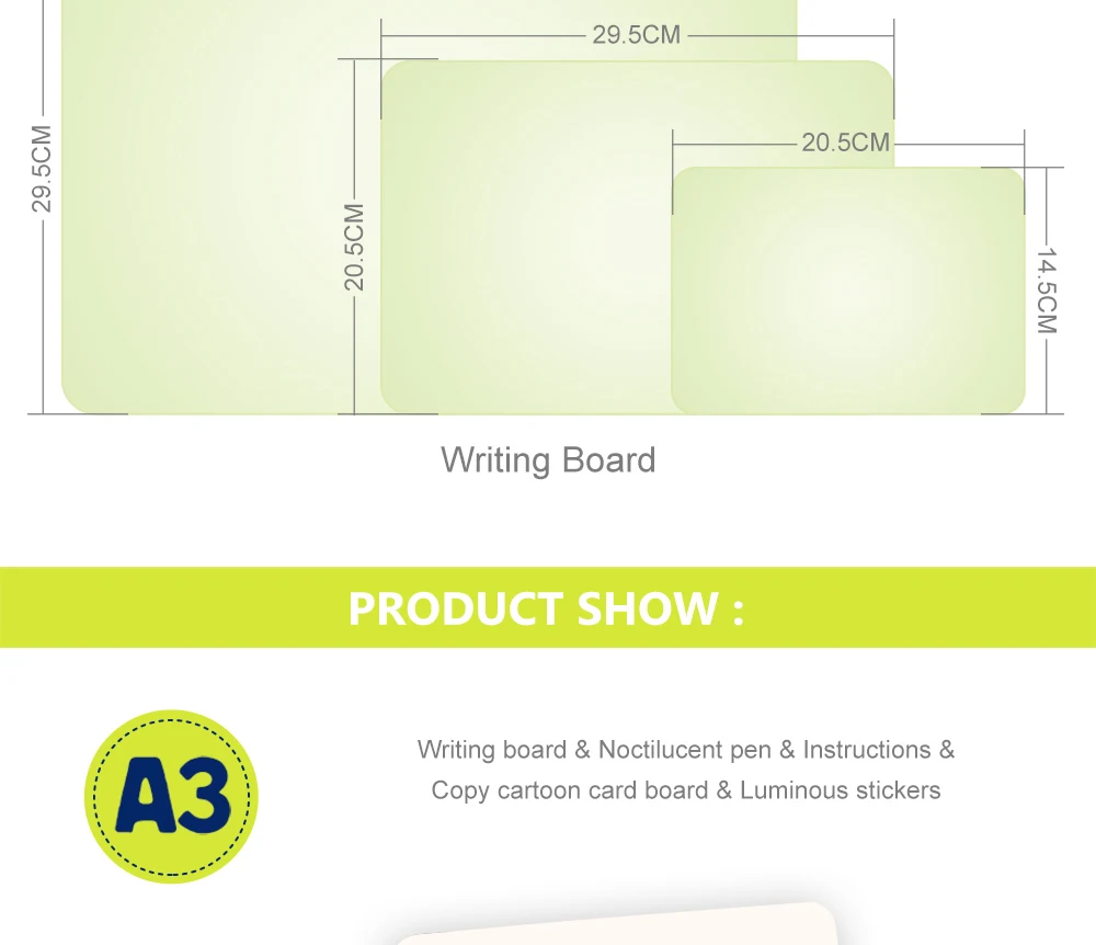 (1) a tablet with a light-accumulating covering, Size: A3 or A4 or A5.