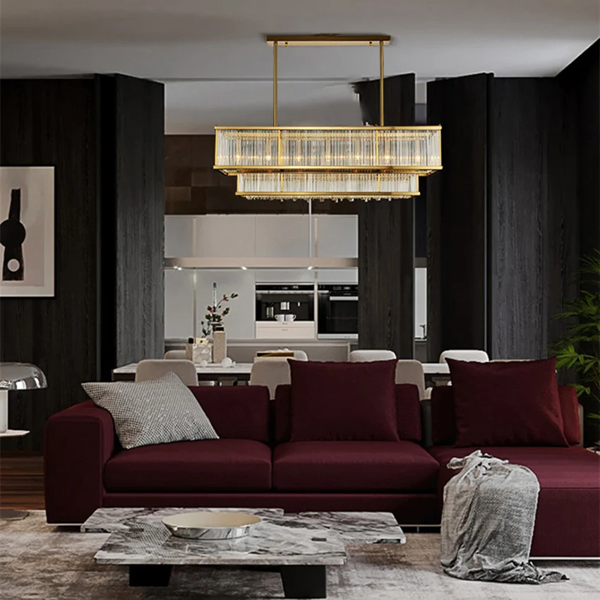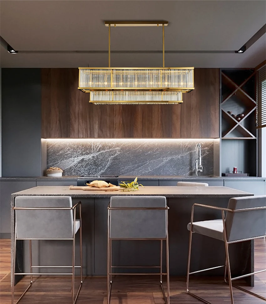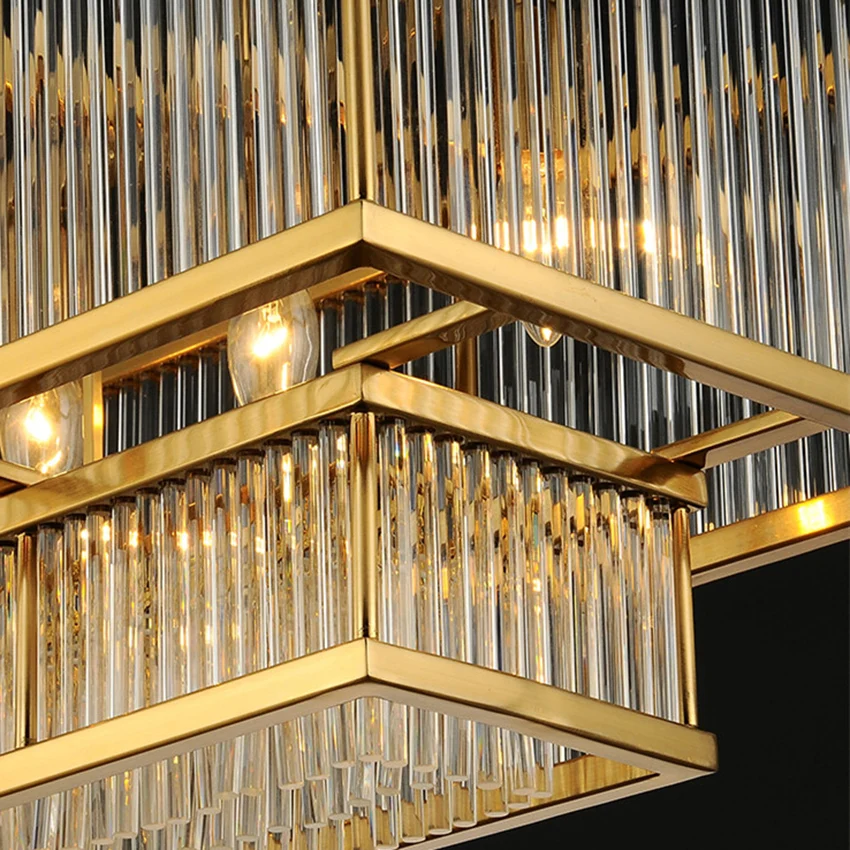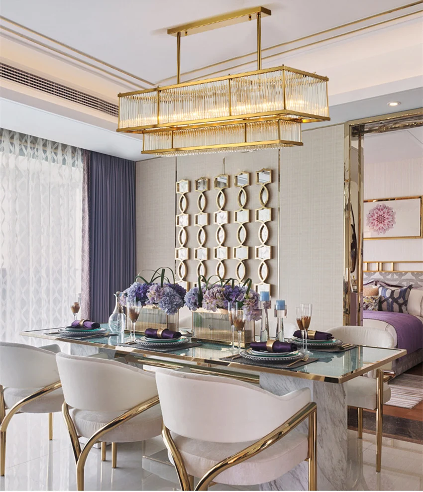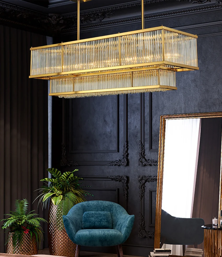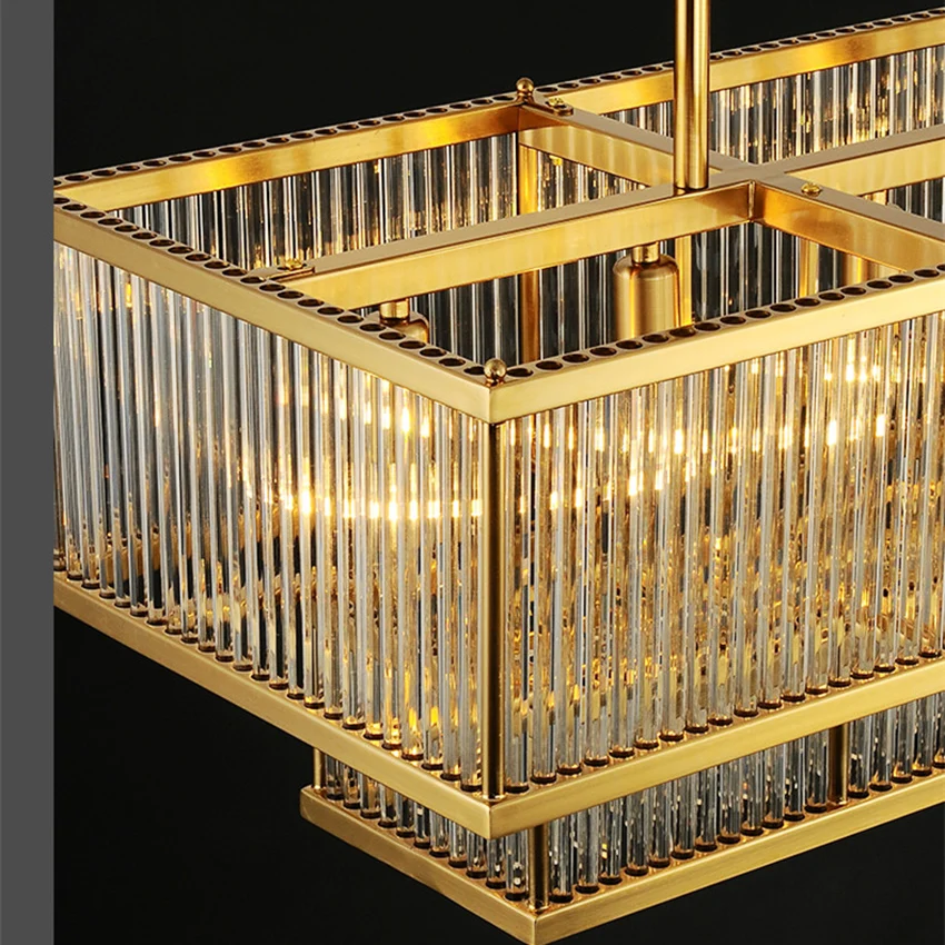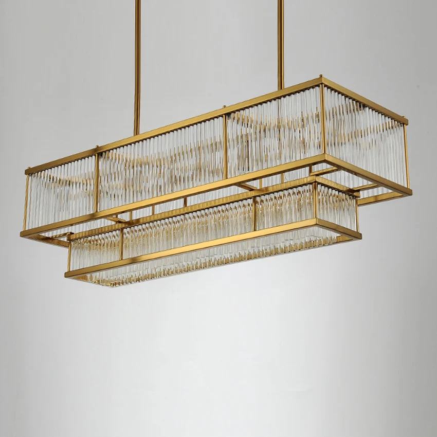 Luxury dining room chandelier post-modern Gold metal glass pipe rectangular long lustre suspension lamp living room kitchen fixture