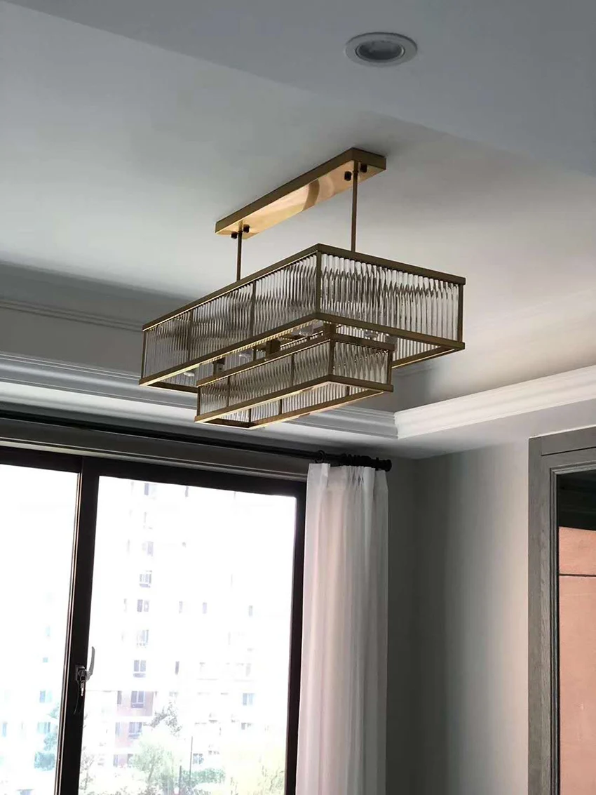 Luxury dining room chandelier post-modern Gold metal glass pipe rectangular lustre suspension lamp living room kitchen fixtures