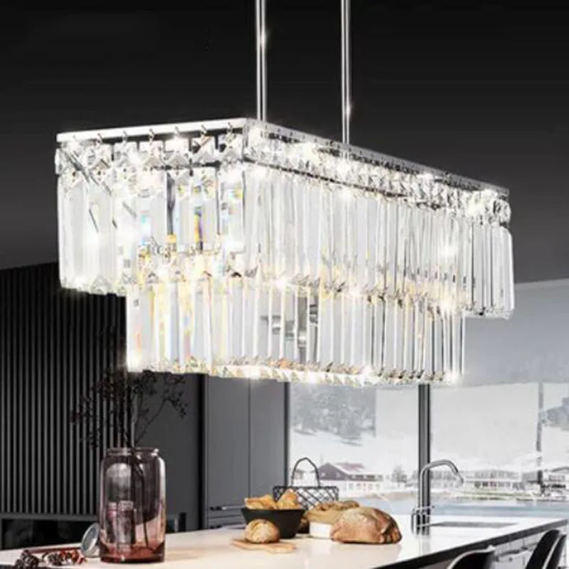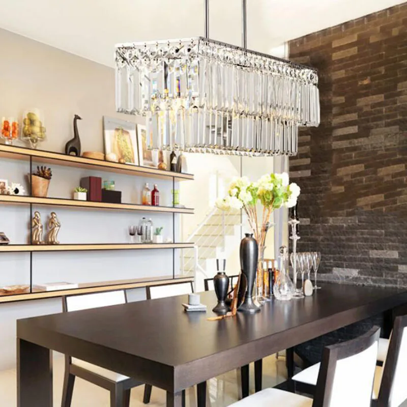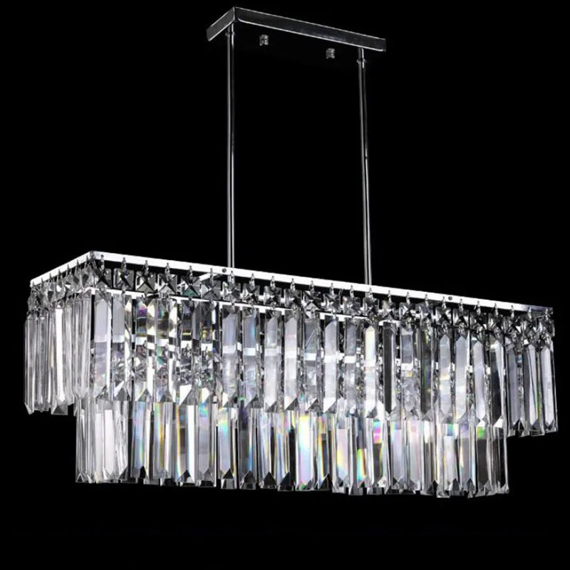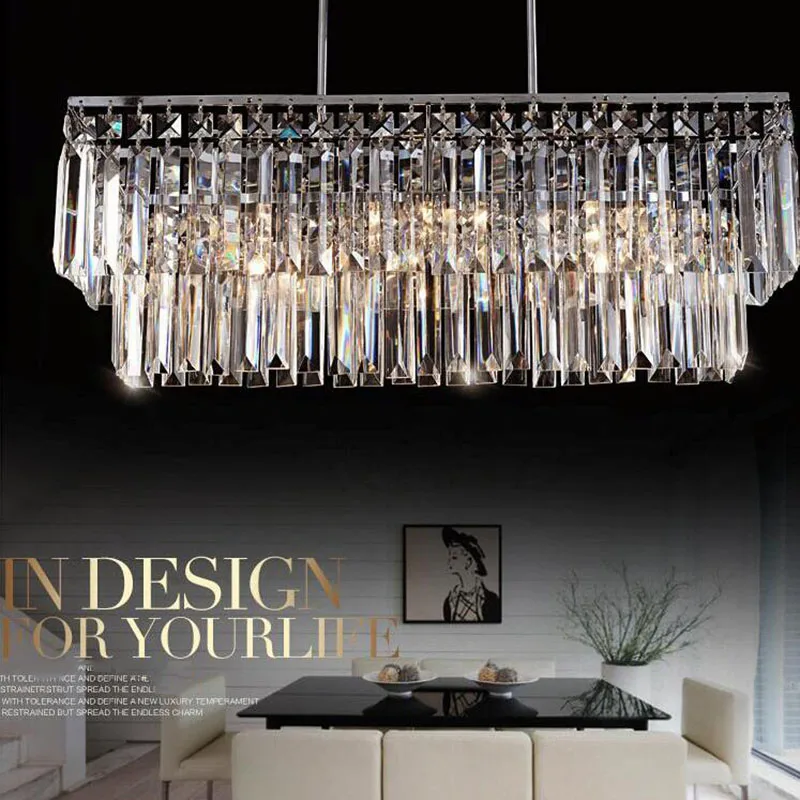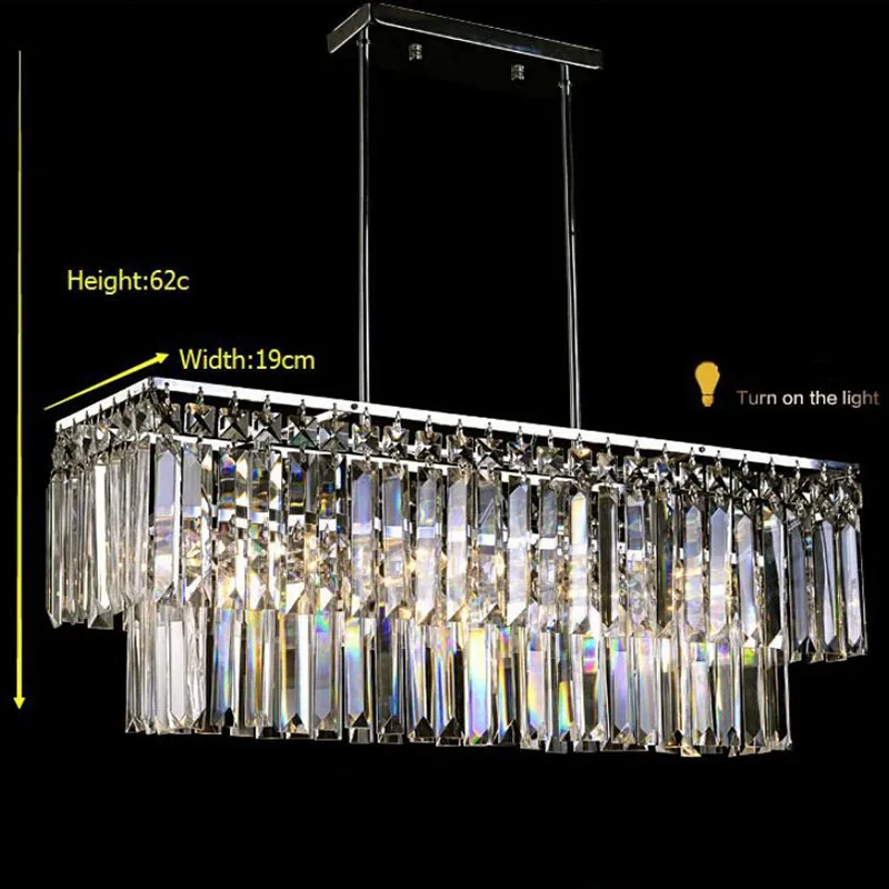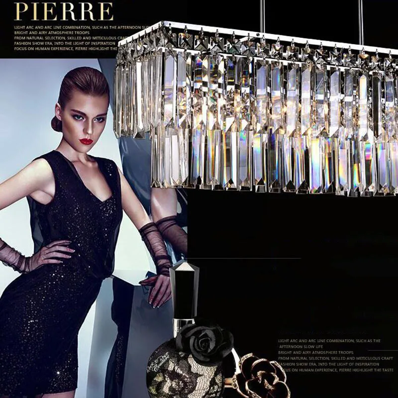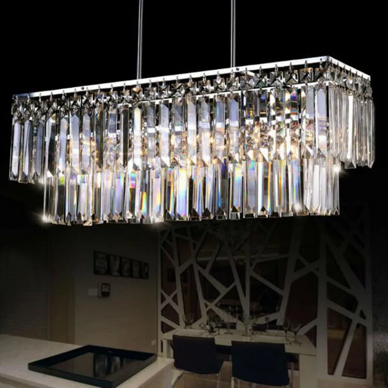 Luxury K9 rectangular crystal chandelier LED glow pendant lamp bedroom living room E14 Chandeliers luminaire paragraph room
