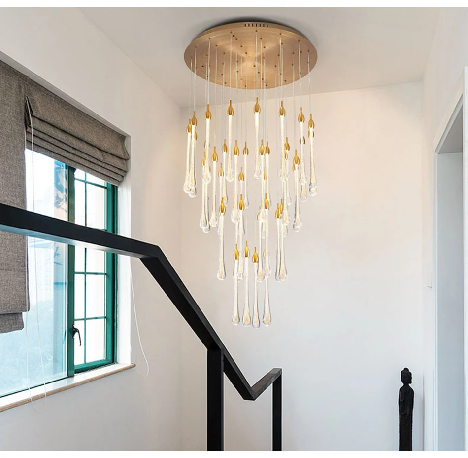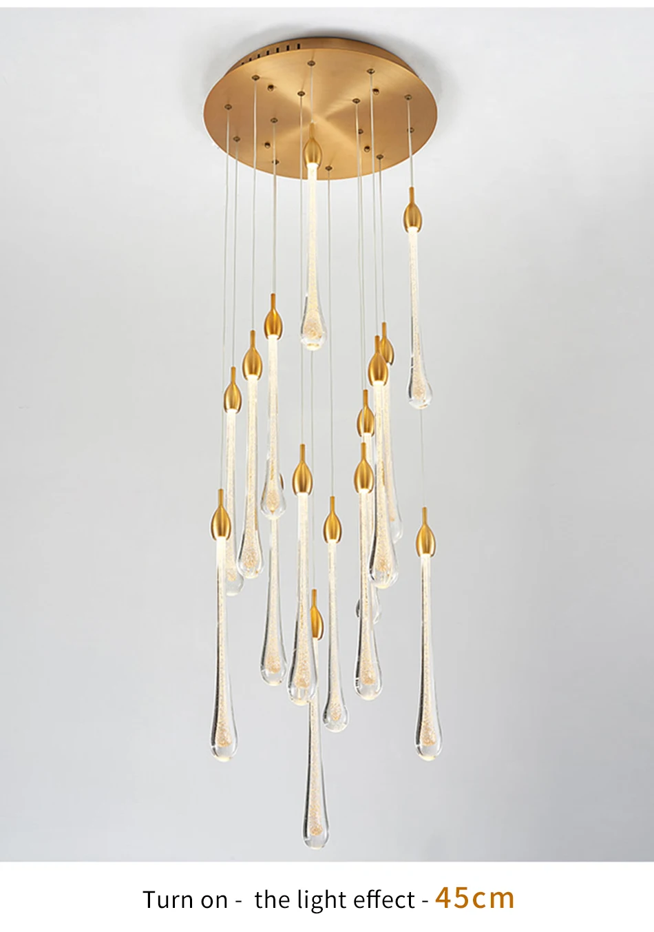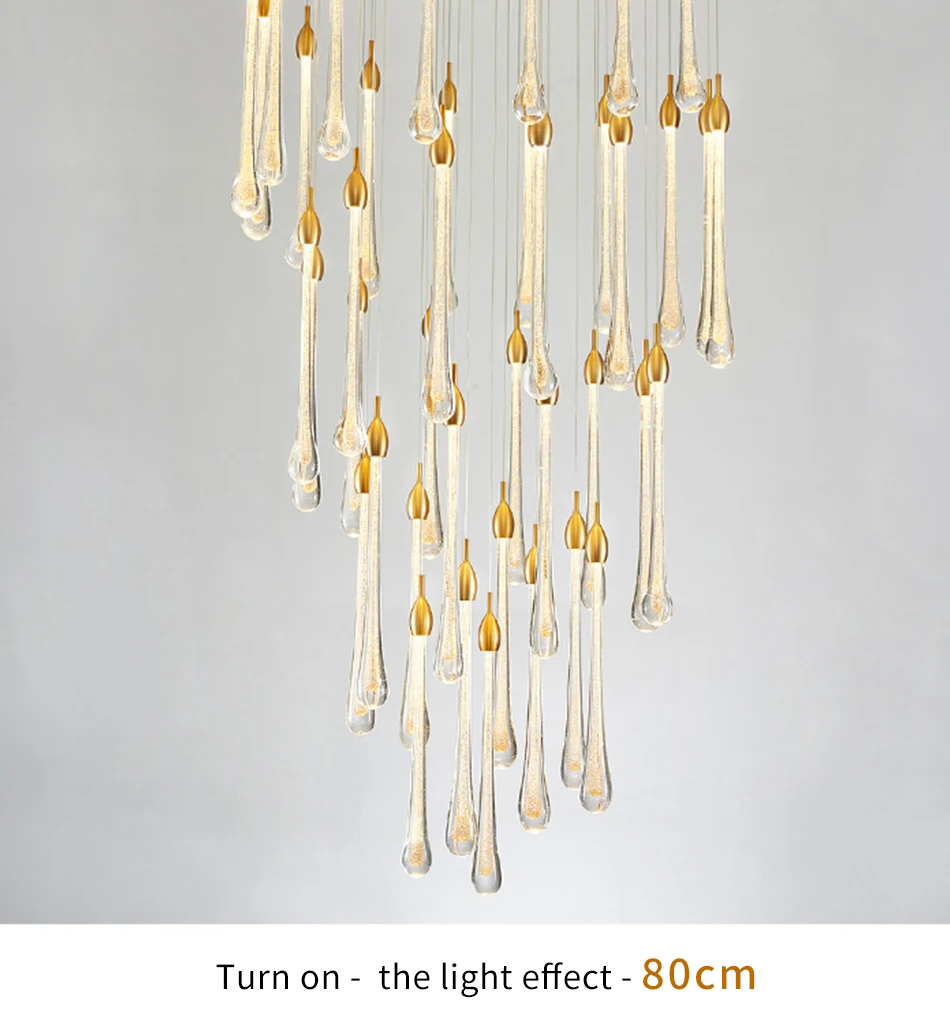 Luxury modern led large staircase crystal chandelier lighting long water drop fixtures kitchen island restaurant hanging lamp