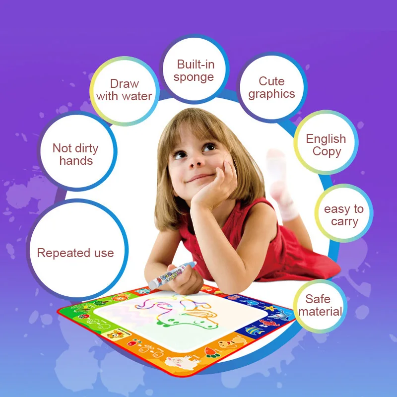 This painting cloth is made of premium material, eco-friendly and safe enough for kids. It provides a start on learning how to drawing activities. Ideal for helping kids imagination and creativity development. Great kids painting and writing cloth.