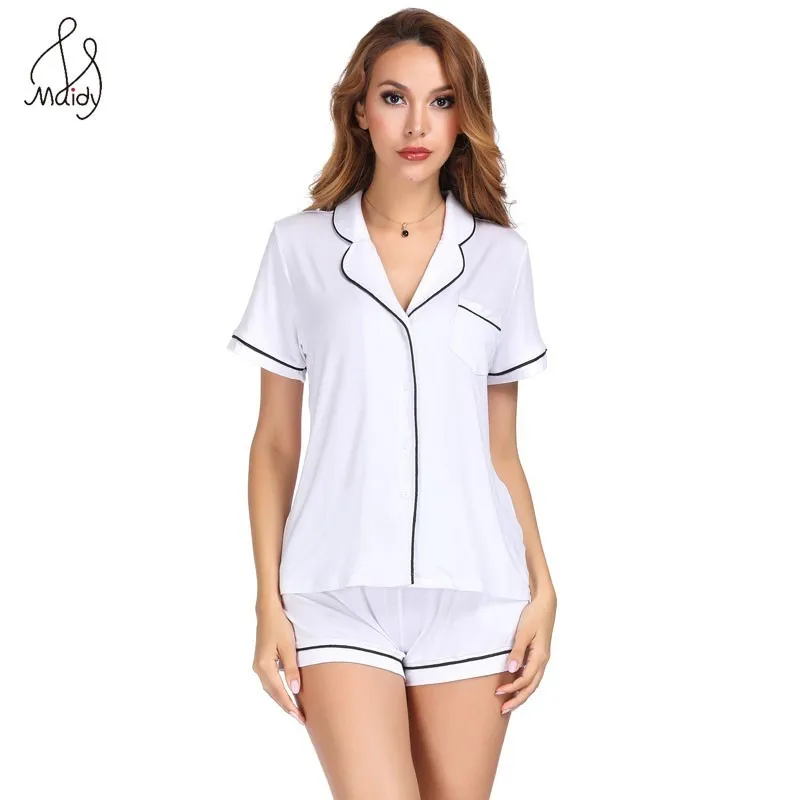 Maidy Ladies Pajama Sets Modal Shorts Short Sleeve Pajamas Set Women Turn-down Collar Summer Femme Sexy Lingerie Sleepwear S-XL