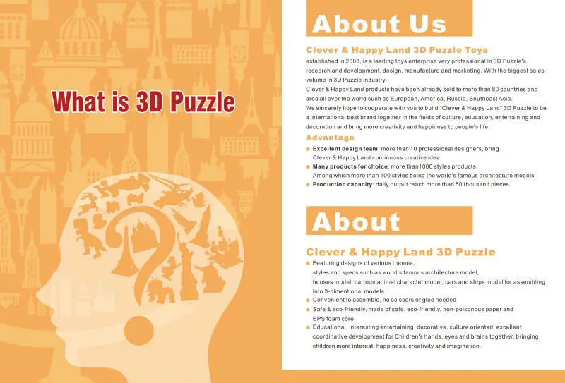 Clever&Happy provide over 1,000 items of 3D puzzle for your choice,