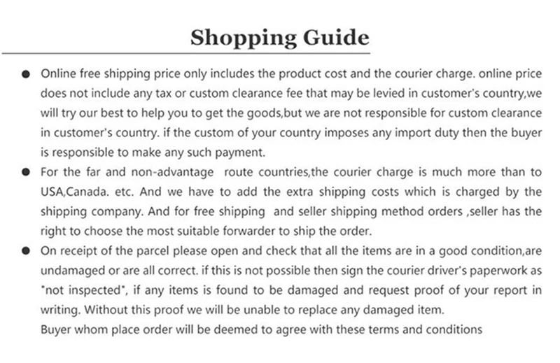 We are not responsible for any custom fees once the items have shipped. By purchasing our products, you consent that one or more packages may be shipped to you and may get custom fees when they arrive to your country.