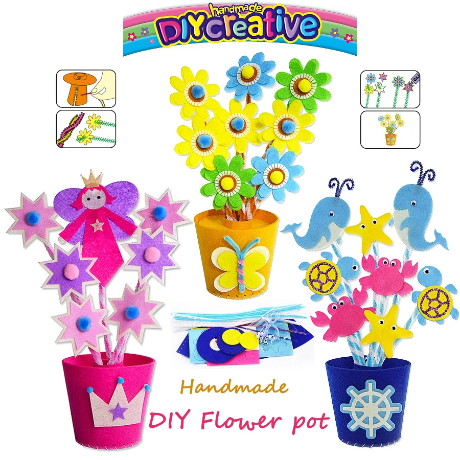 ★What you get – 1 set Sewing Kits DIY flower pot. Recommend for age above 6years. Coloring baby kids childhood
