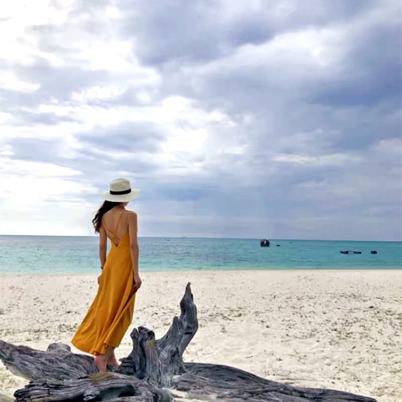 Marwin New-Coming Spring Summer Holiday Dress Cross Spaghetti Strap Open Back Solid Beach Style Ankle-Length Women Dresses