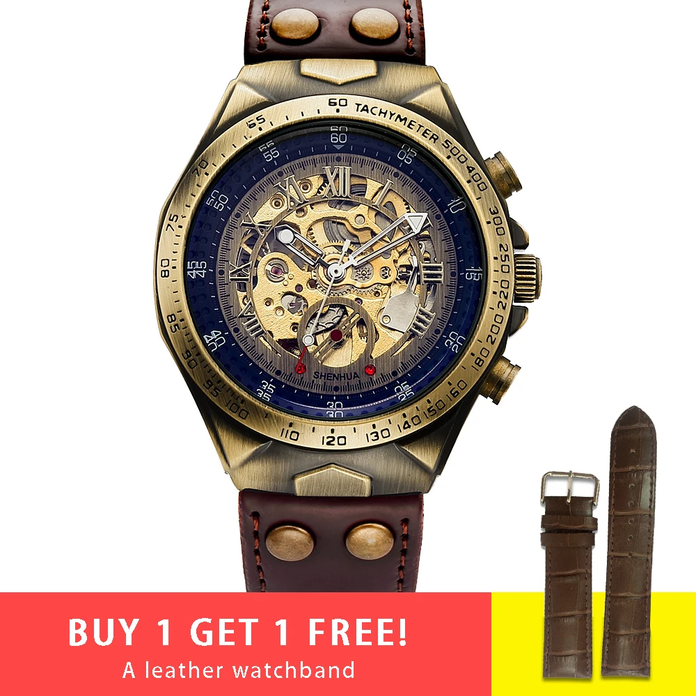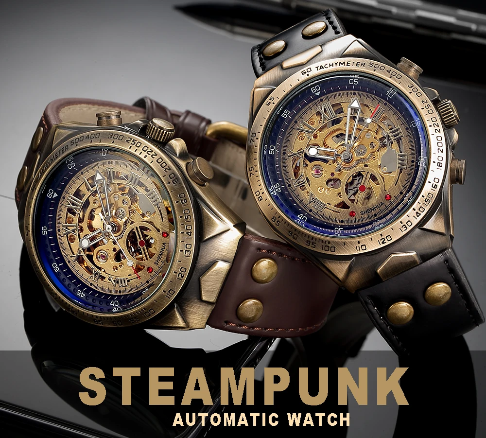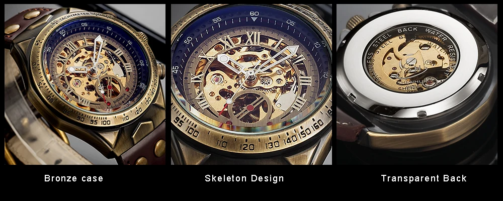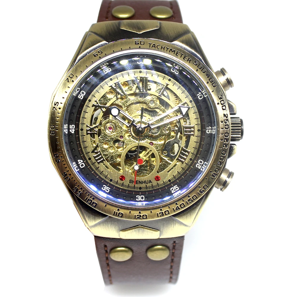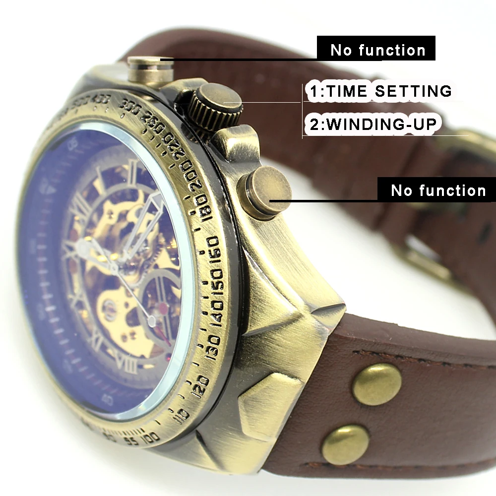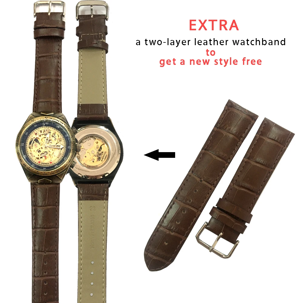 Steampunk Automatic Watch Men Mechanical Watches Vintage Bronze Retro Leather Transparent Skeleton Watch Clock Man Dropshipping