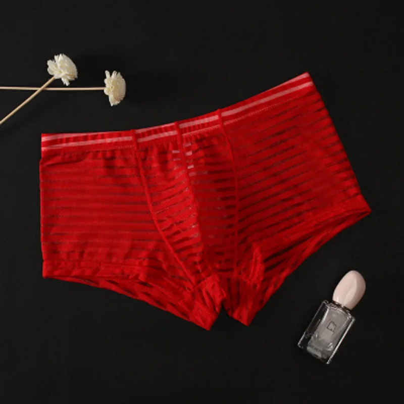 Stripe Men’s mesh transparent boxer low waist ultra-thin ice silk sexy breathable