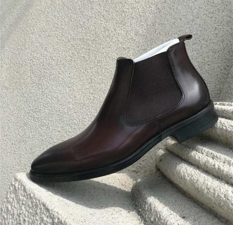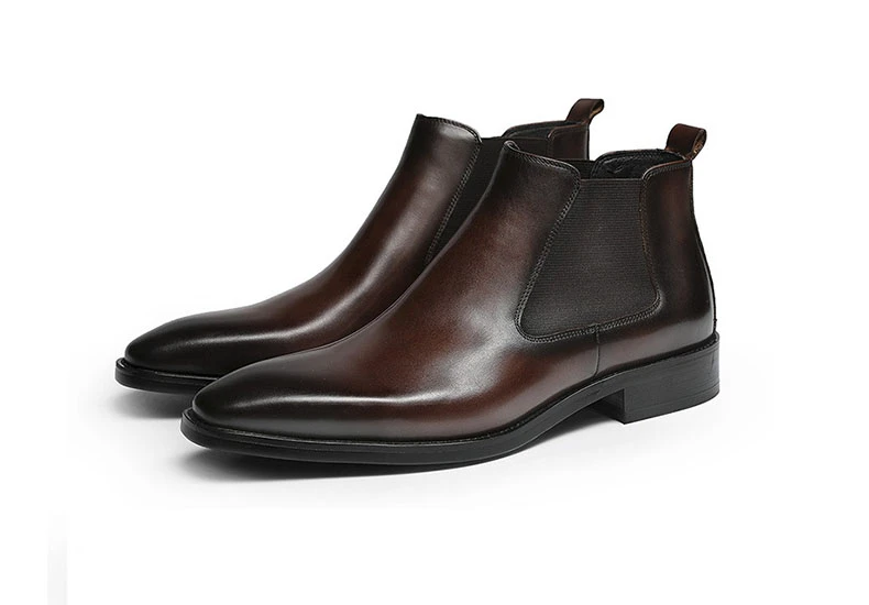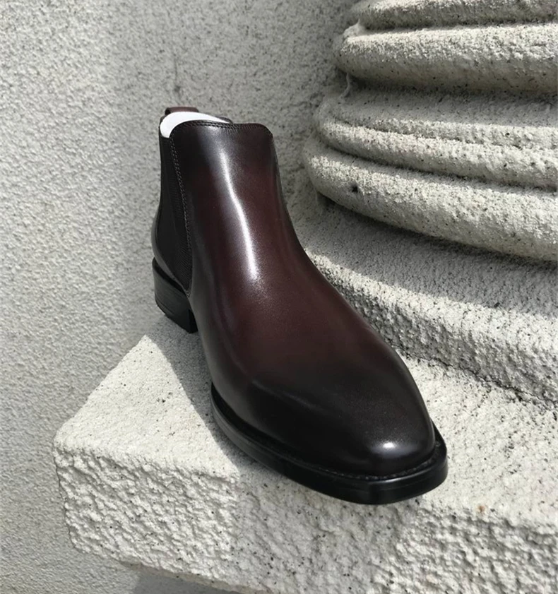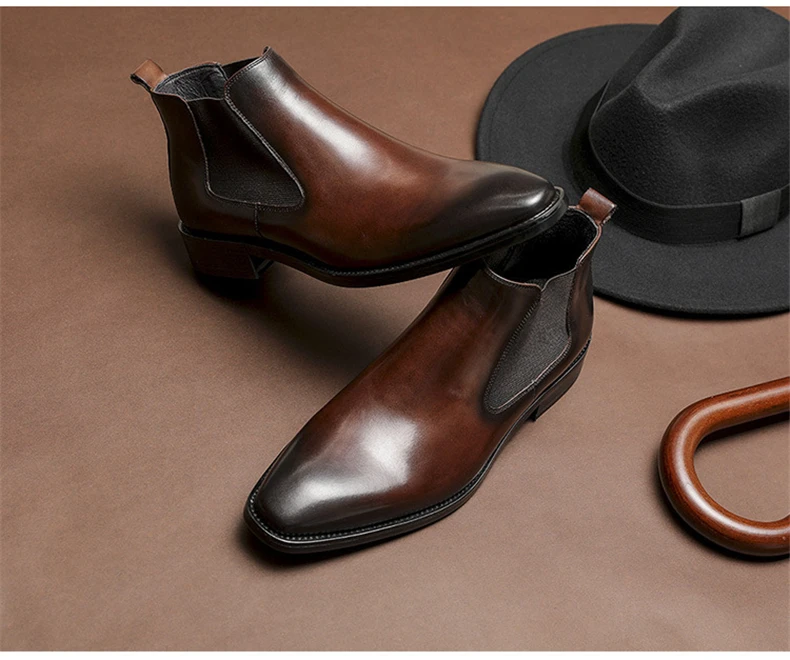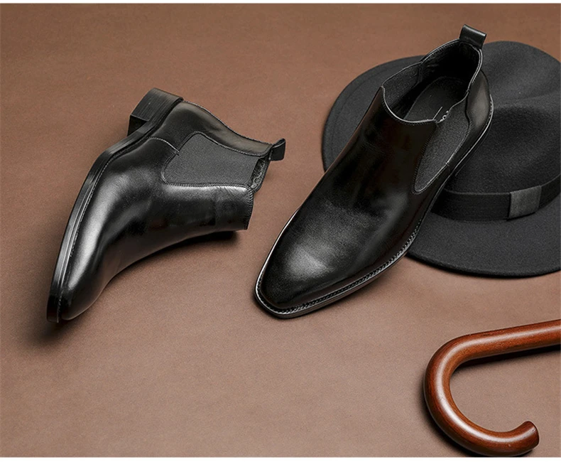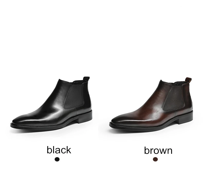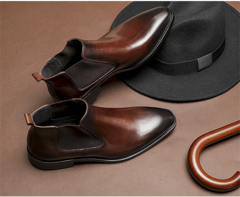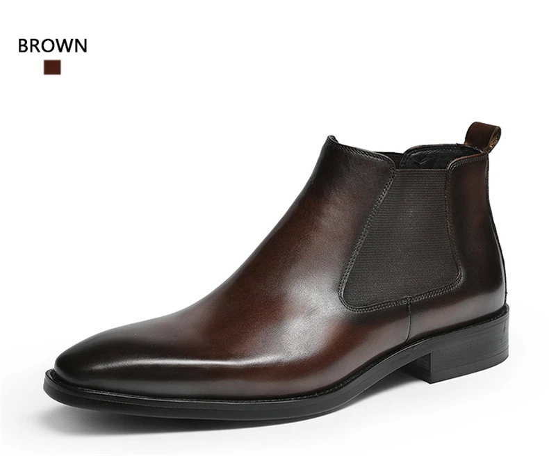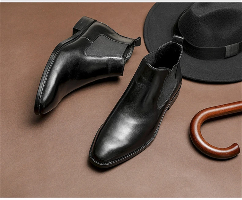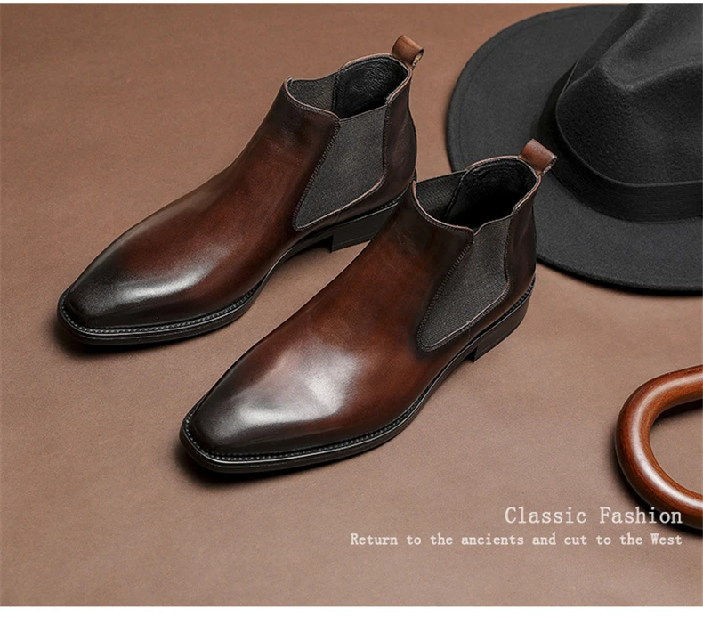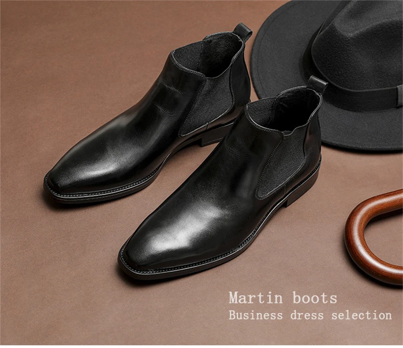Men italy winter Boots Genuine cow leather chelsea boots brogue casual ankle flat shoes High quality luxury slip on dress boots