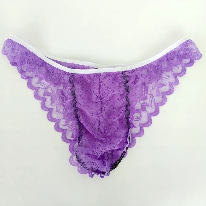 Mens Lace Underwear G2929 Rose Flower Lace Low Rise pouch Tanga Violet