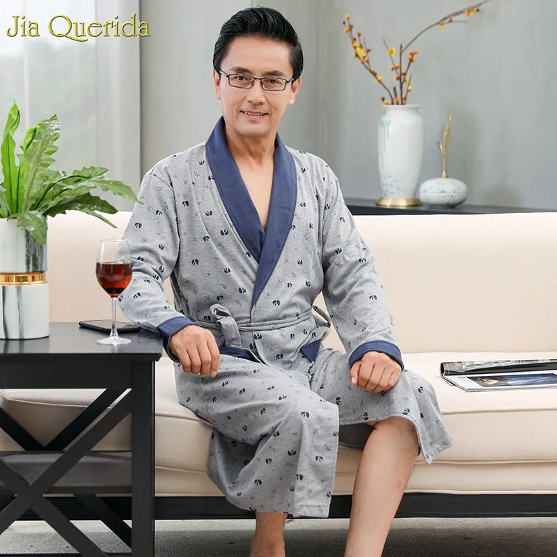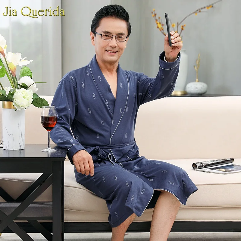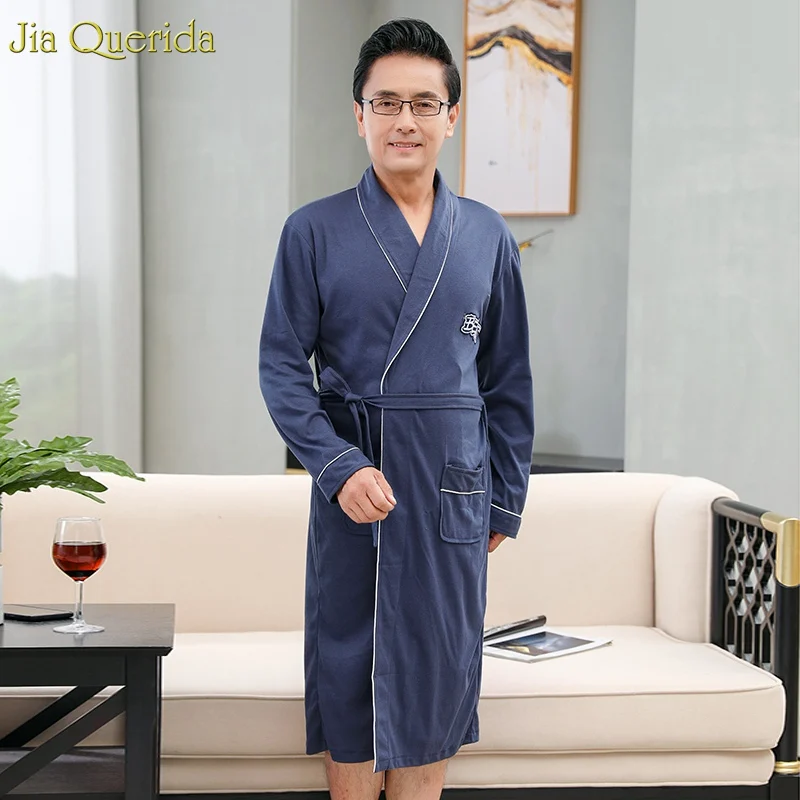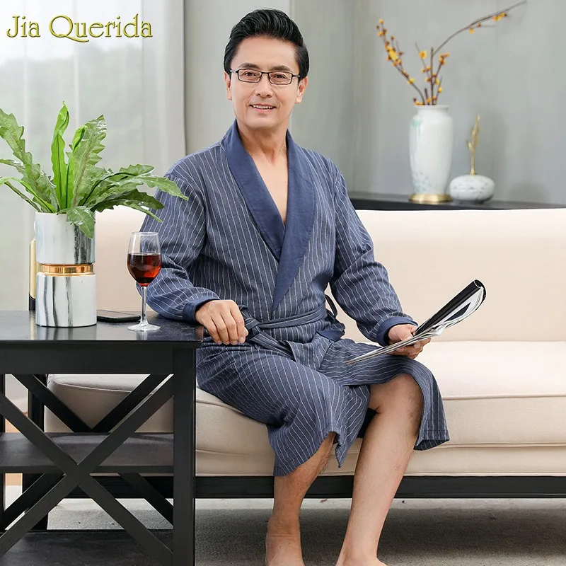 Mens Robe Cotton Long Sleeve Navy Nightgown Peignoir Bathrobe Plaid Bathrobe Bath Kimono Robe Yukata Mens Cotton Sleepwear Robes