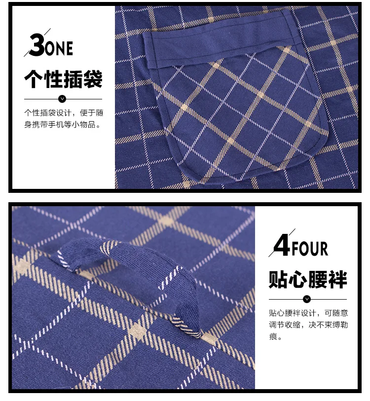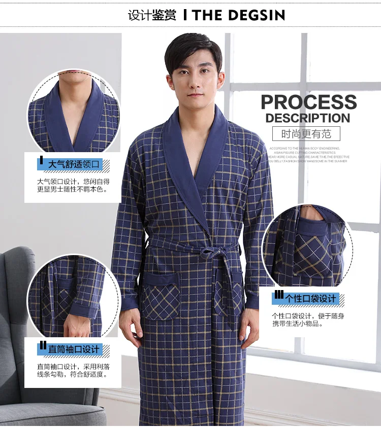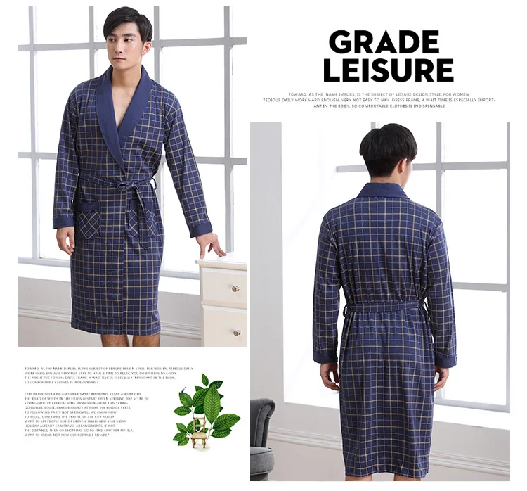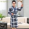 Mens Robe Cotton Long Sleeve Navy Nightgown Peignoir Bathrobe Plaid Bathrobe Bath Kimono Robe Yukata Mens Cotton Sleepwear Robes