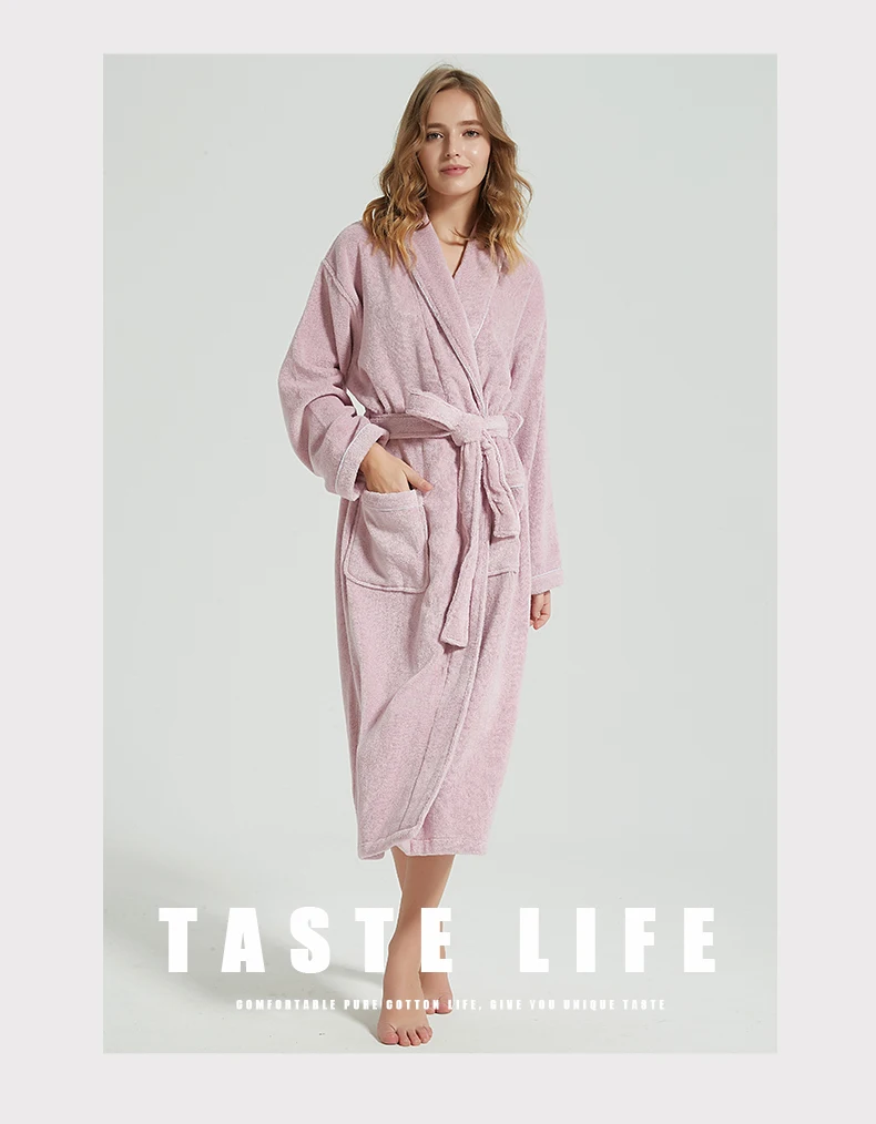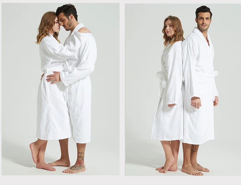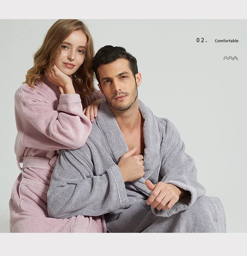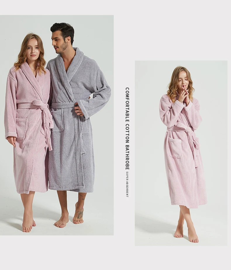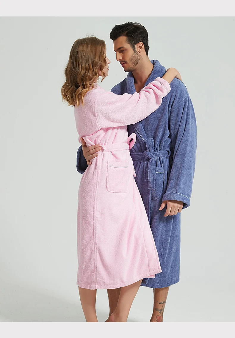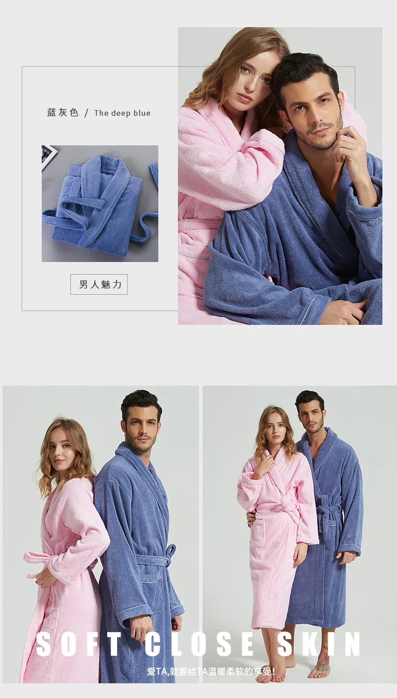Men’s Winter Bathrobe 100% Cotton Lengthened Shawl Bathrobe Home Clothes Long Sleeved Robe Men Robe Towel Fleece Bridesmaid