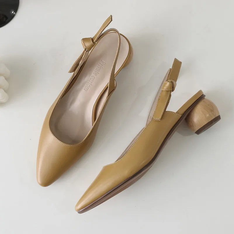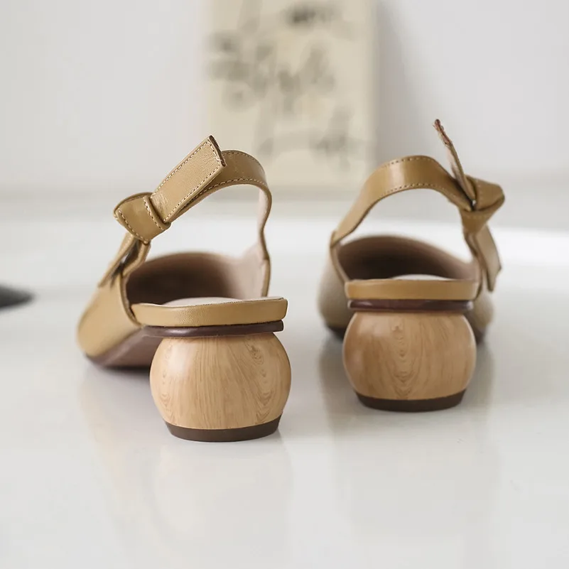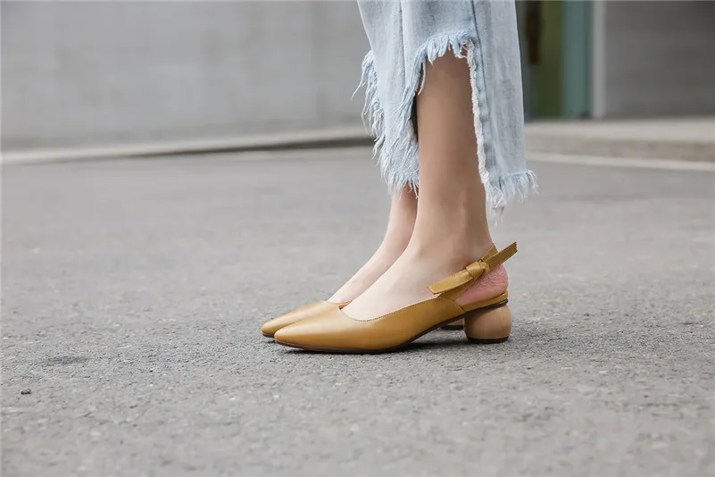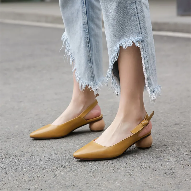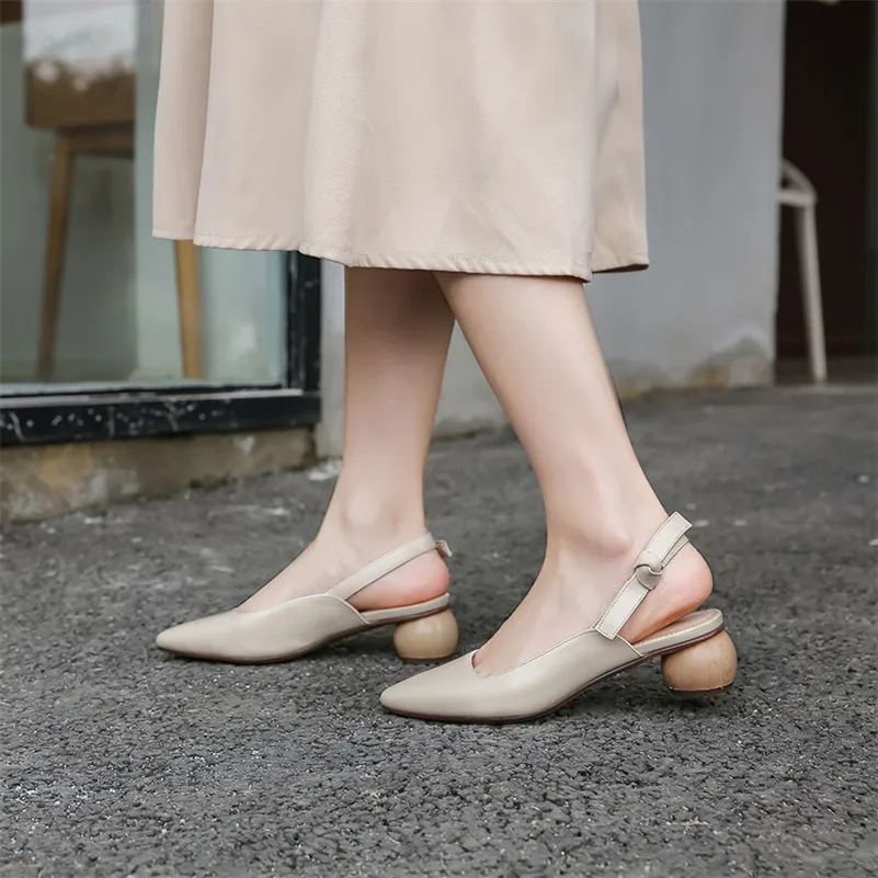 Meotina High Heels Women Slingbacks Shoes Natural Genuine Leather Strange Style Heels Shoes Cow Leather Pointed Toe Pumps Ladies