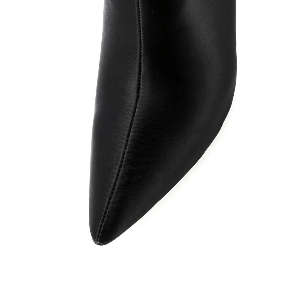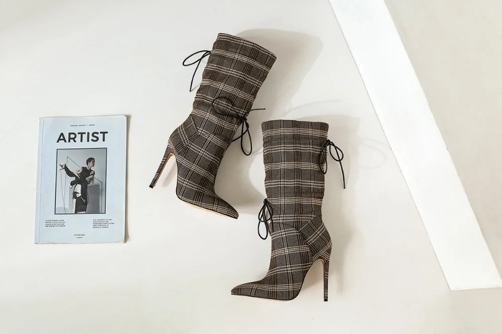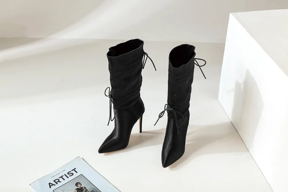 Meotina Mid-Calf Boots Women Shoes Super High Heel Female Boots Pointed Toe Thin Heels Lace UP Lady Footwear Winter Black 46