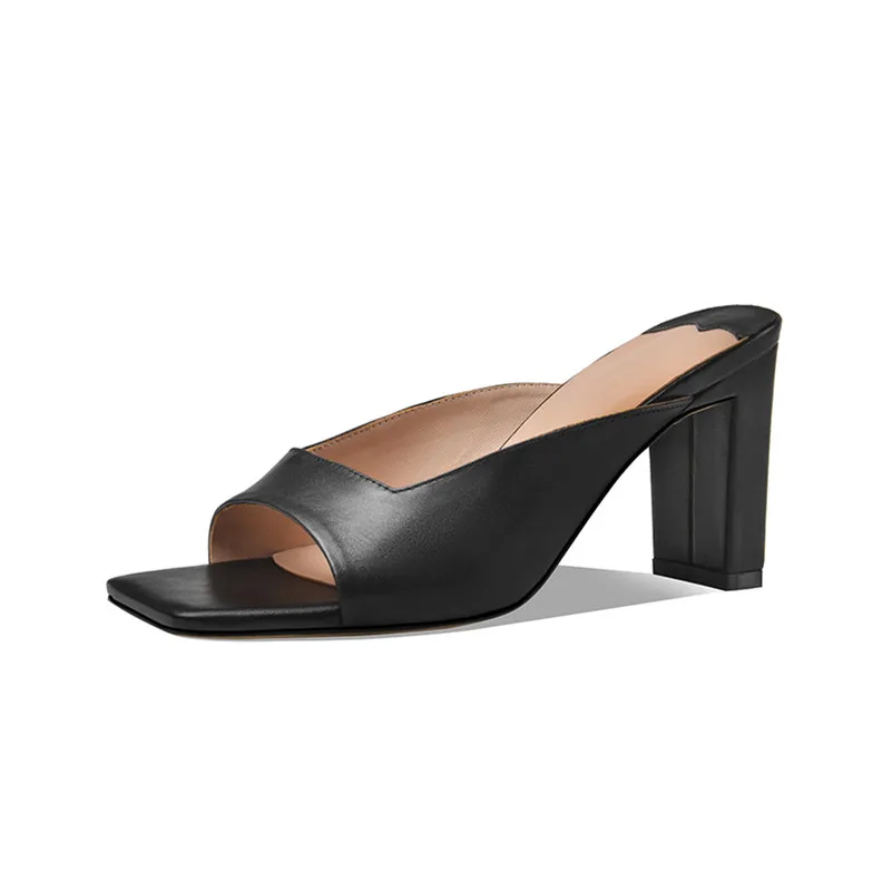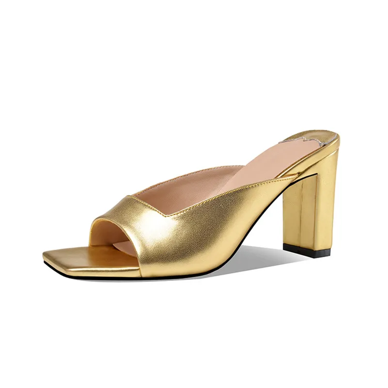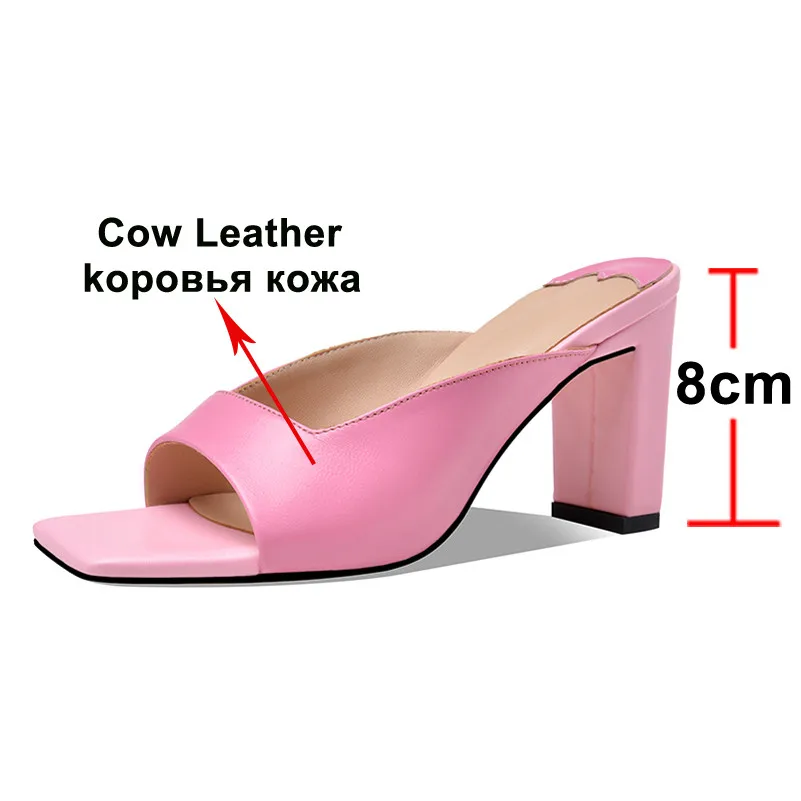 Meotina Summer Slippers Women Shoes Natural Genuine Leather Thick High Heels Shoes Real Leather Open Toe Slides Lady Sandals 39