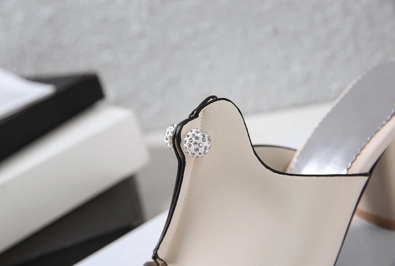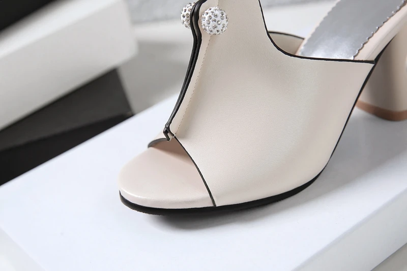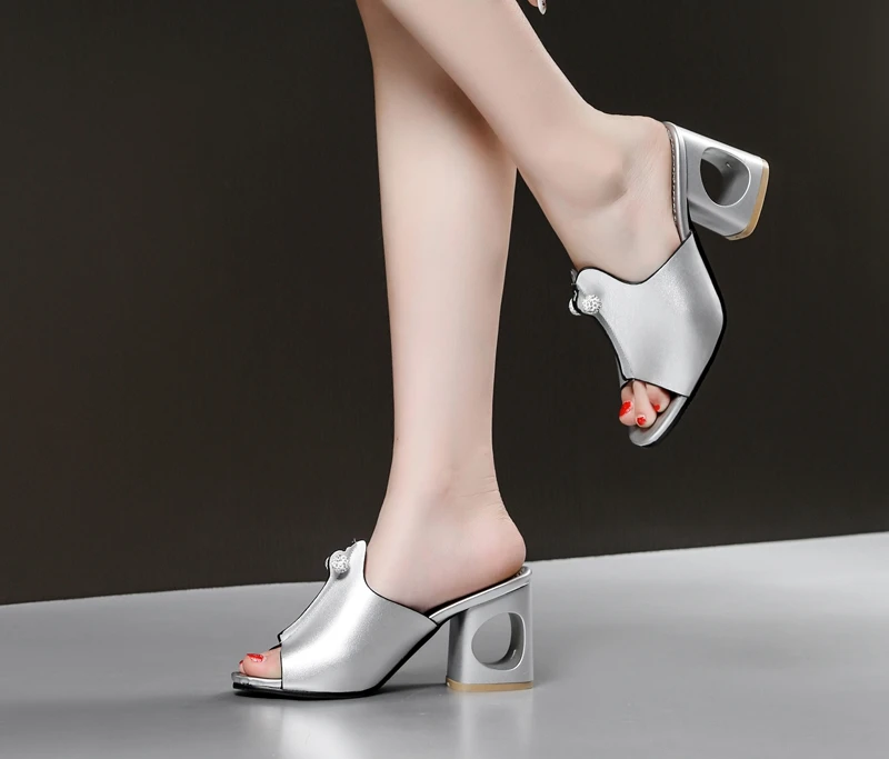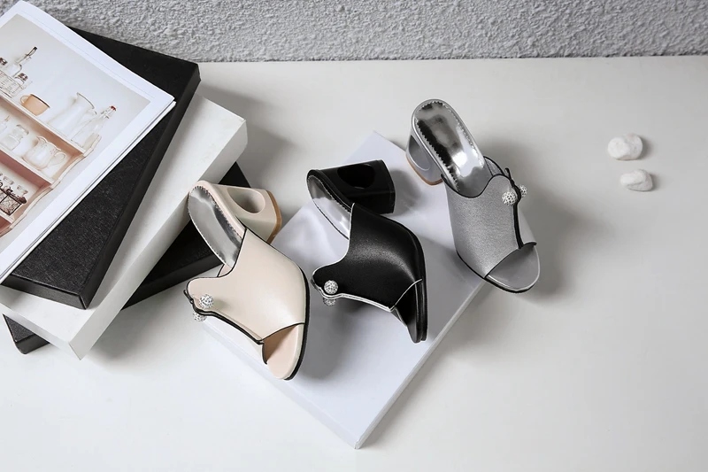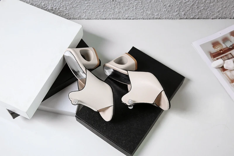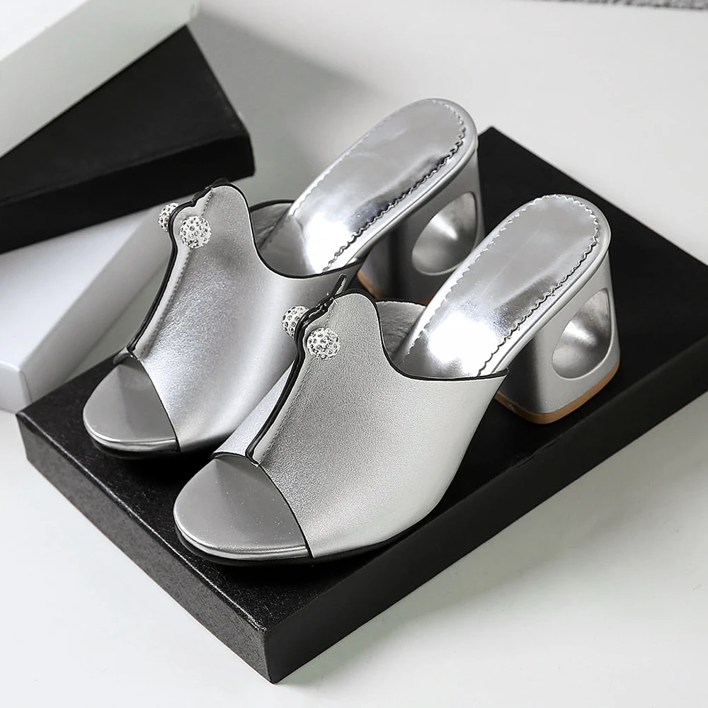 Meotina Women Shoes Summer Slides Crystal Fretwork Heels Party Shoes Peep Toe High Heel Slippers Lady Sandals Large Size 33-46