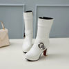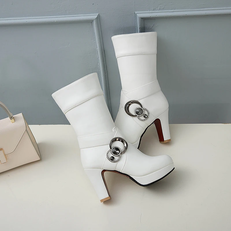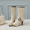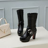 Metallic Decorated Rhinestone Side Zipper Knight Boots Thick Heel Thick Bottom Waterproof Platform Mid-heel Boots PU Mid-boots