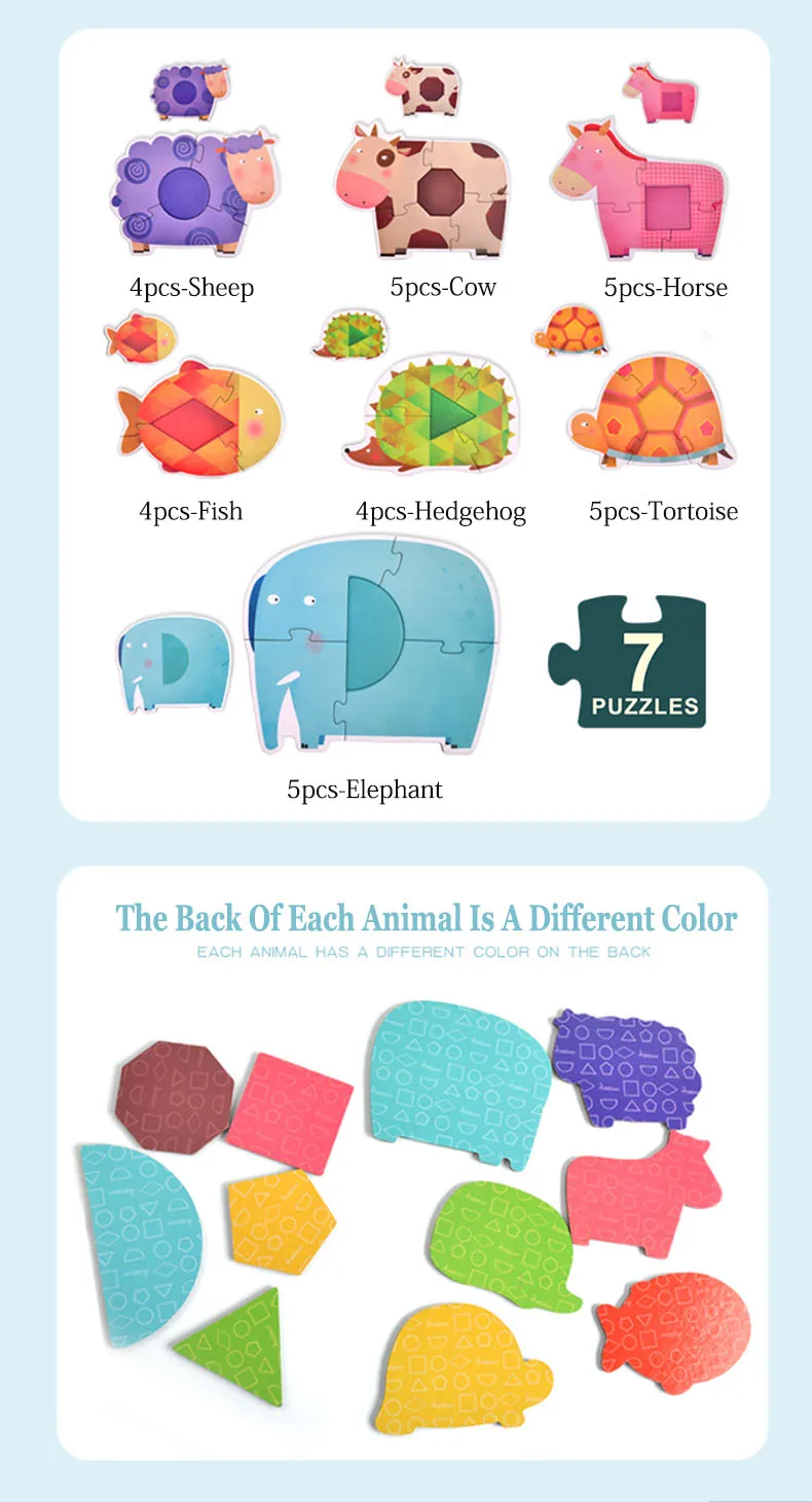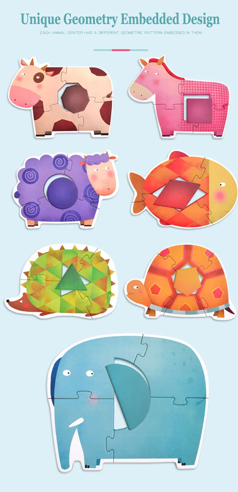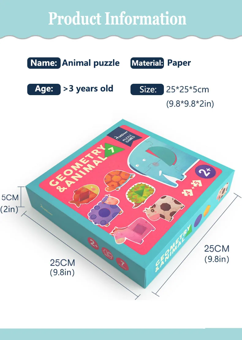 Name:Animal puzzle Material:Paper Age:Over 3 years old Size:25*25*5cm((9.8*9.8*2in)