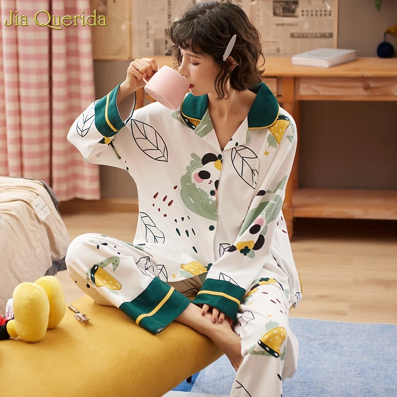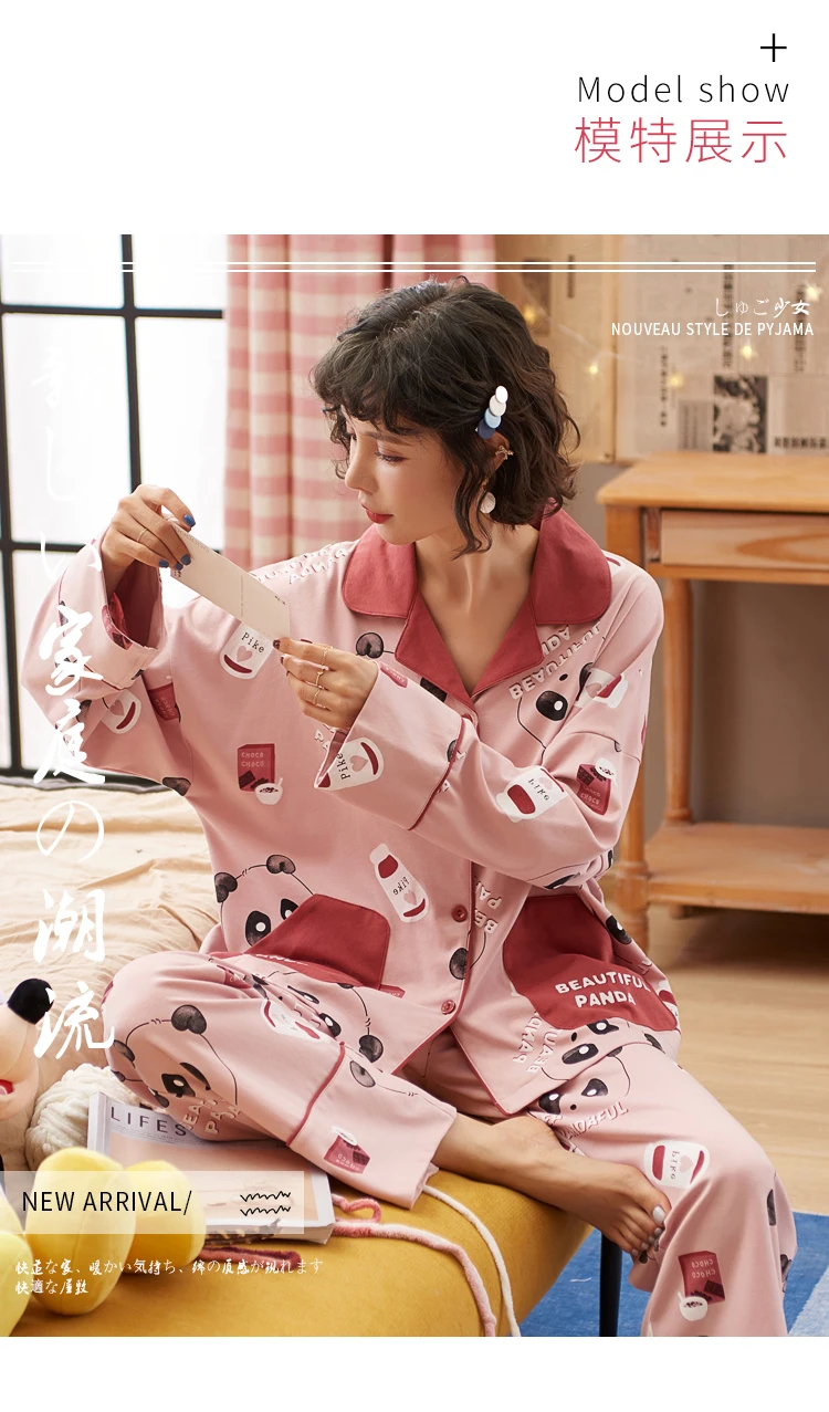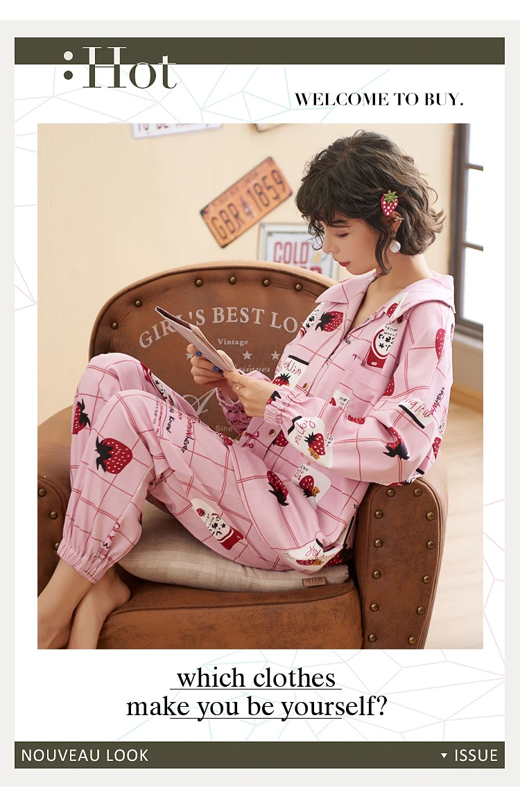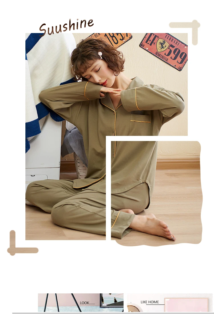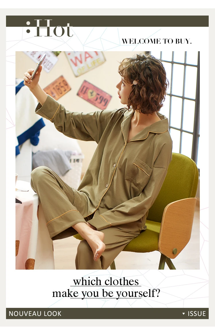 Minimalist Style Pyjamas Women 2020new Spring Fall Cotton Women’s Two Piece Plus Size Loose Korean Style Home Clothes Cotton Pjs