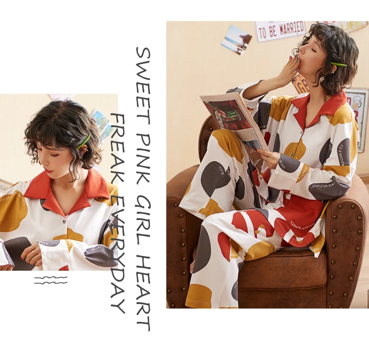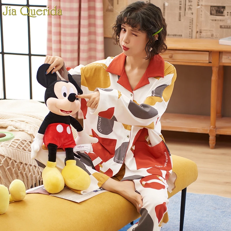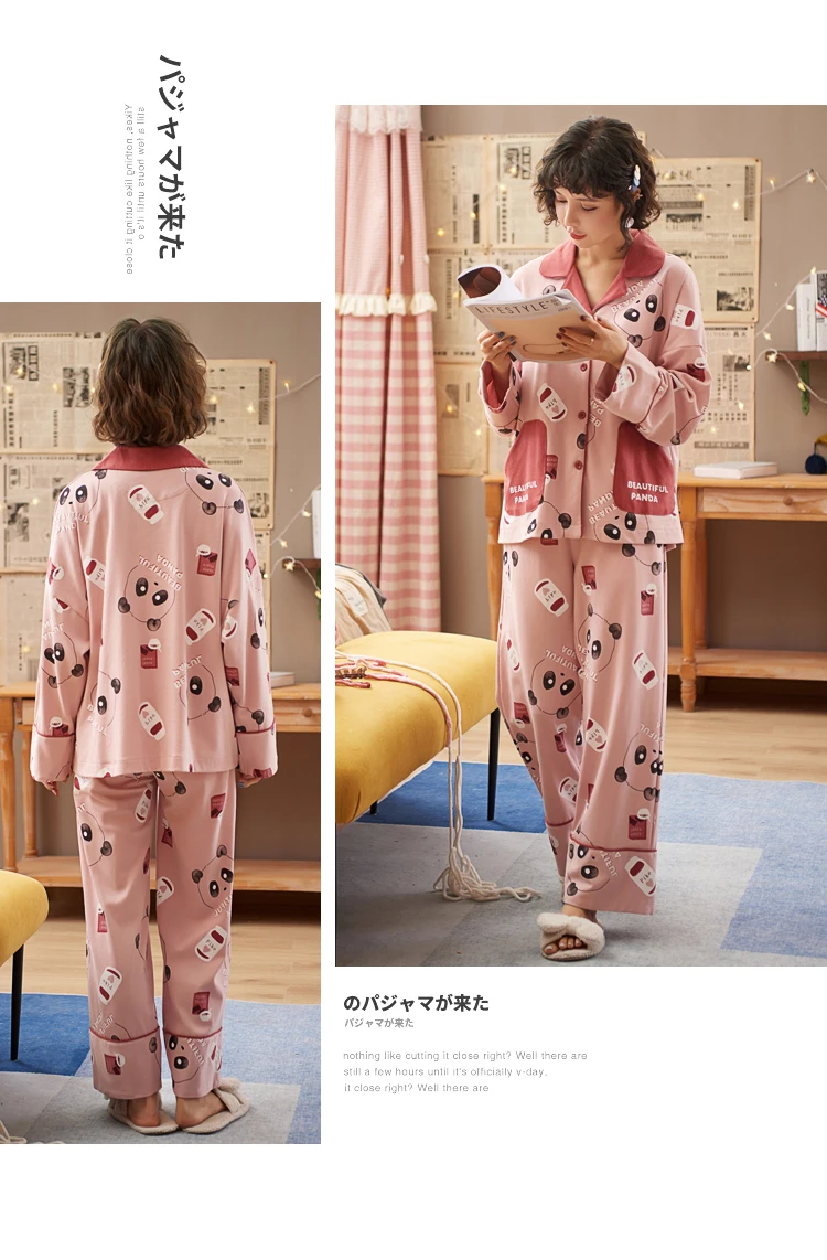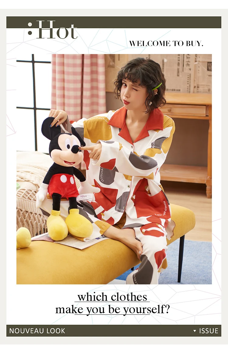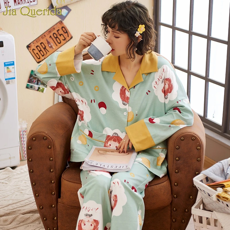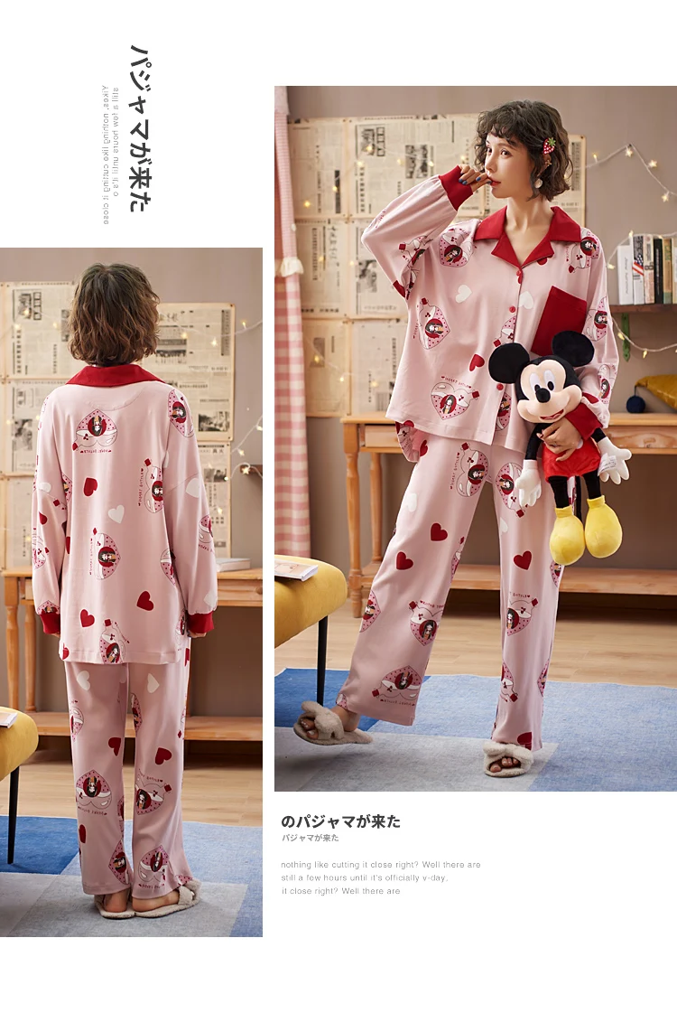 Minimalist Style Pyjamas Women 2020new Spring Fall Cotton Women’s Two Piece Plus Size Loose Korean Style Home Clothes Cotton Pjs