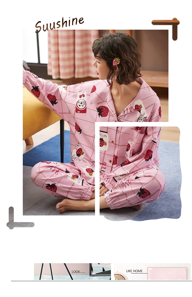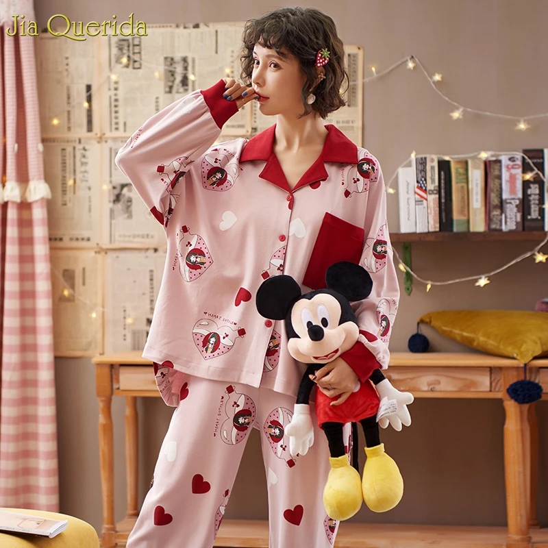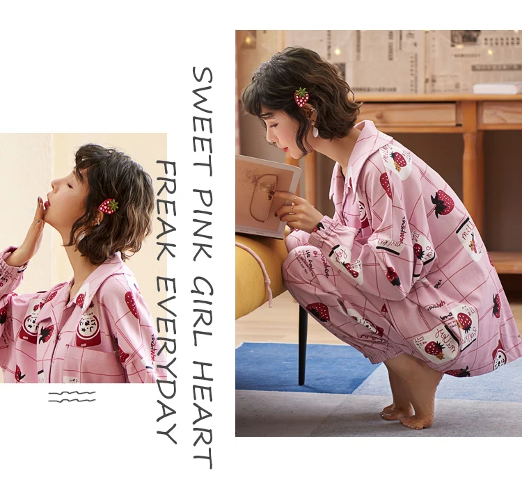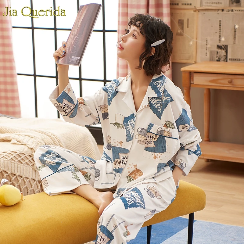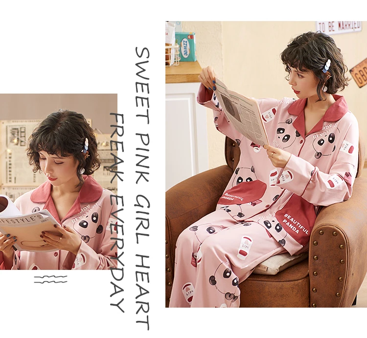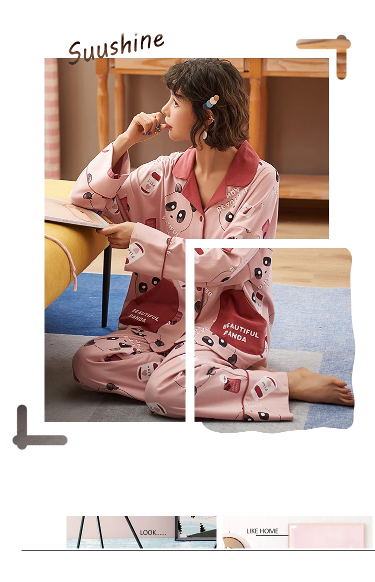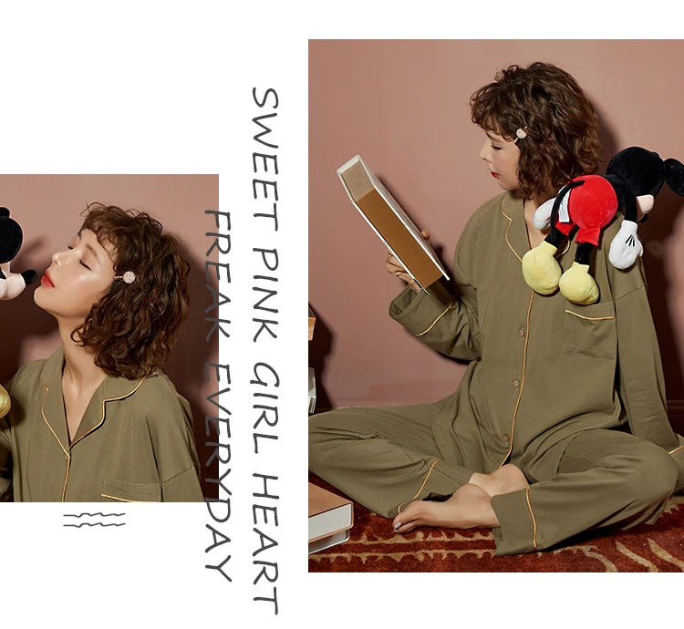 Minimalist Style Pyjamas Women 2020new Spring Fall Cotton Women’s Two Piece Plus Size Loose Korean Style Home Clothes Cotton Pjs