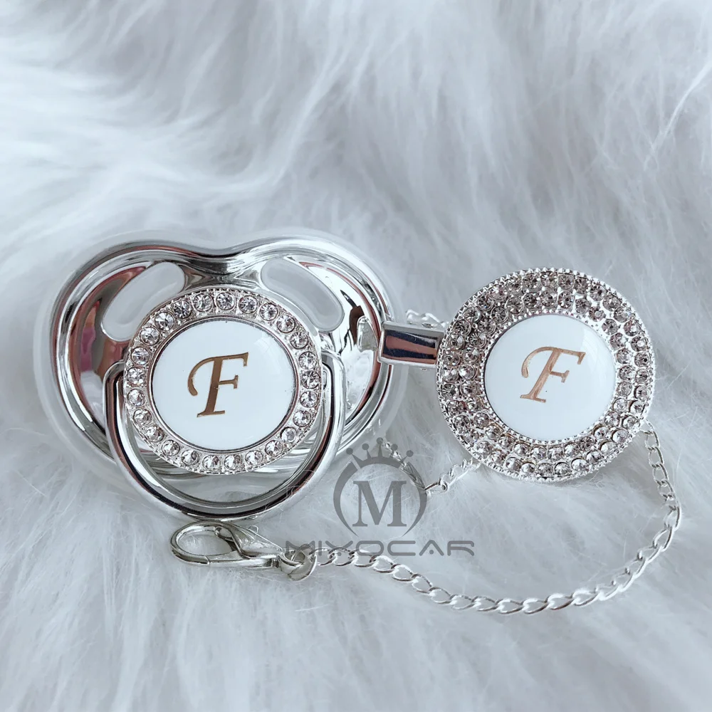 Pacifier and pacifier clip set name Initials letter F unique BPA free dummy bling unique design LF