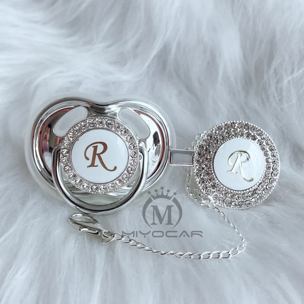 Silver bling pacifier and pacifier clip BPA free dummy bling unique design SGS pass LR