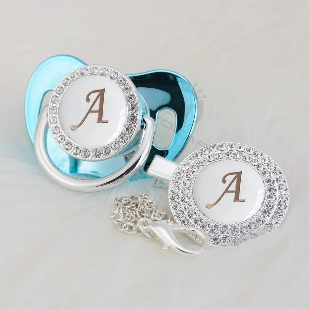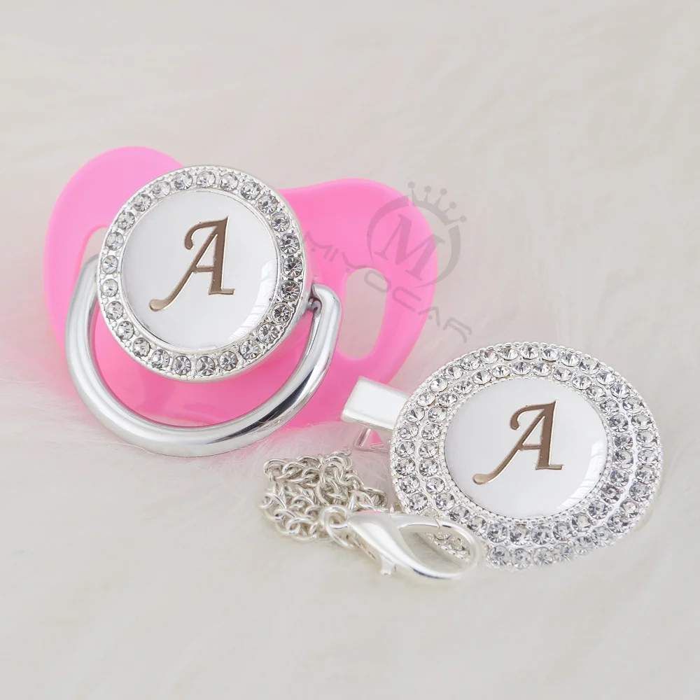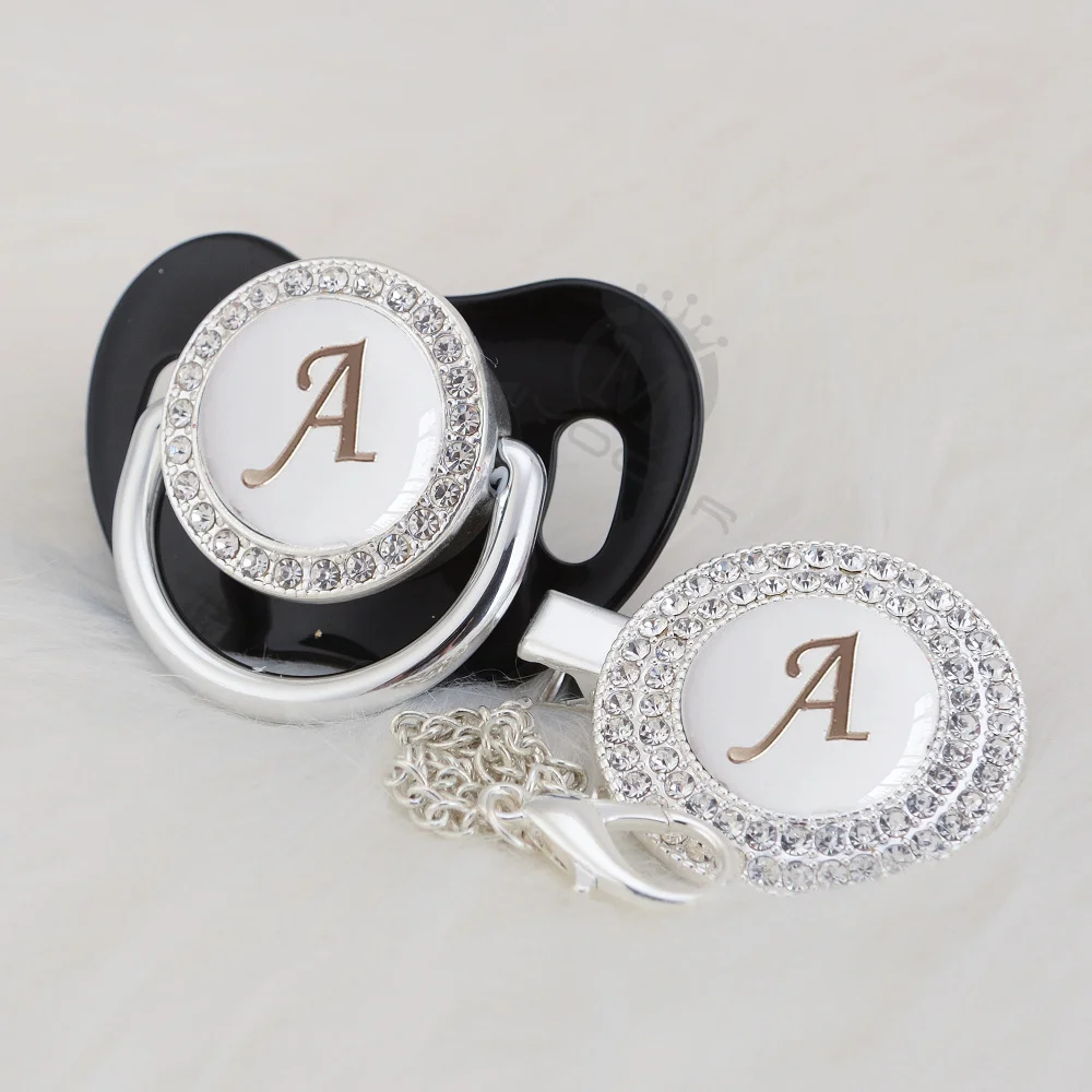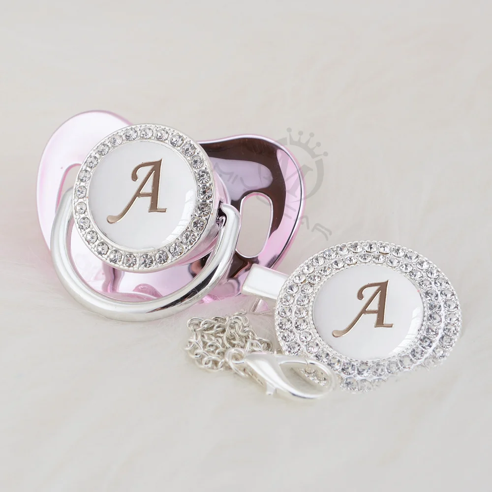 Letter A lovely bling pacifier and pacifier clip BPA free dummy bling unique design LA-1