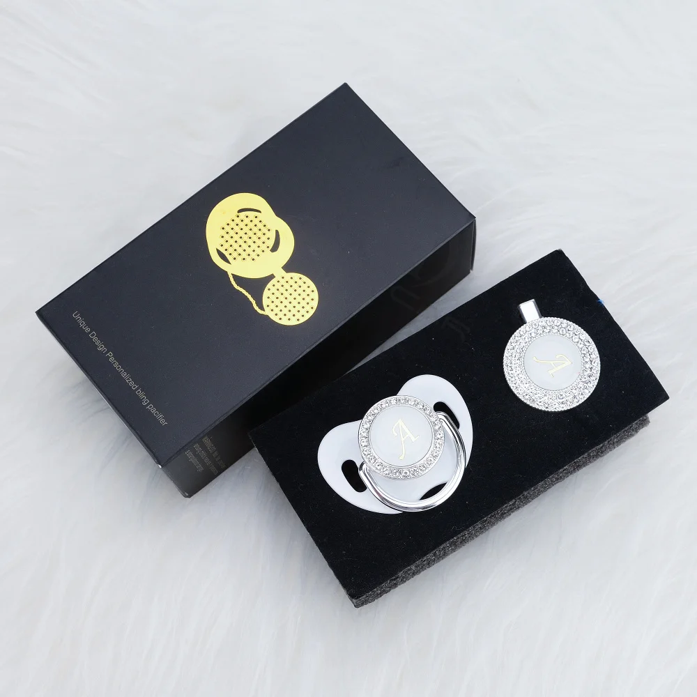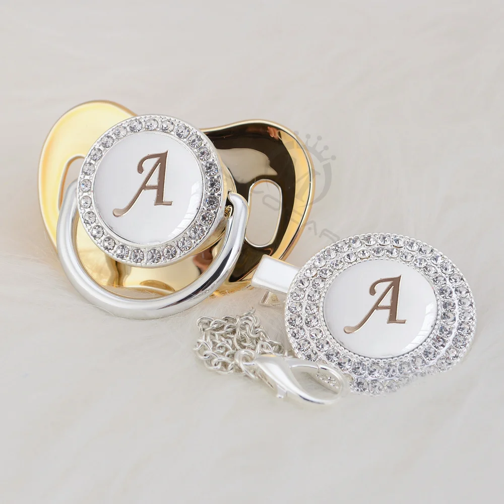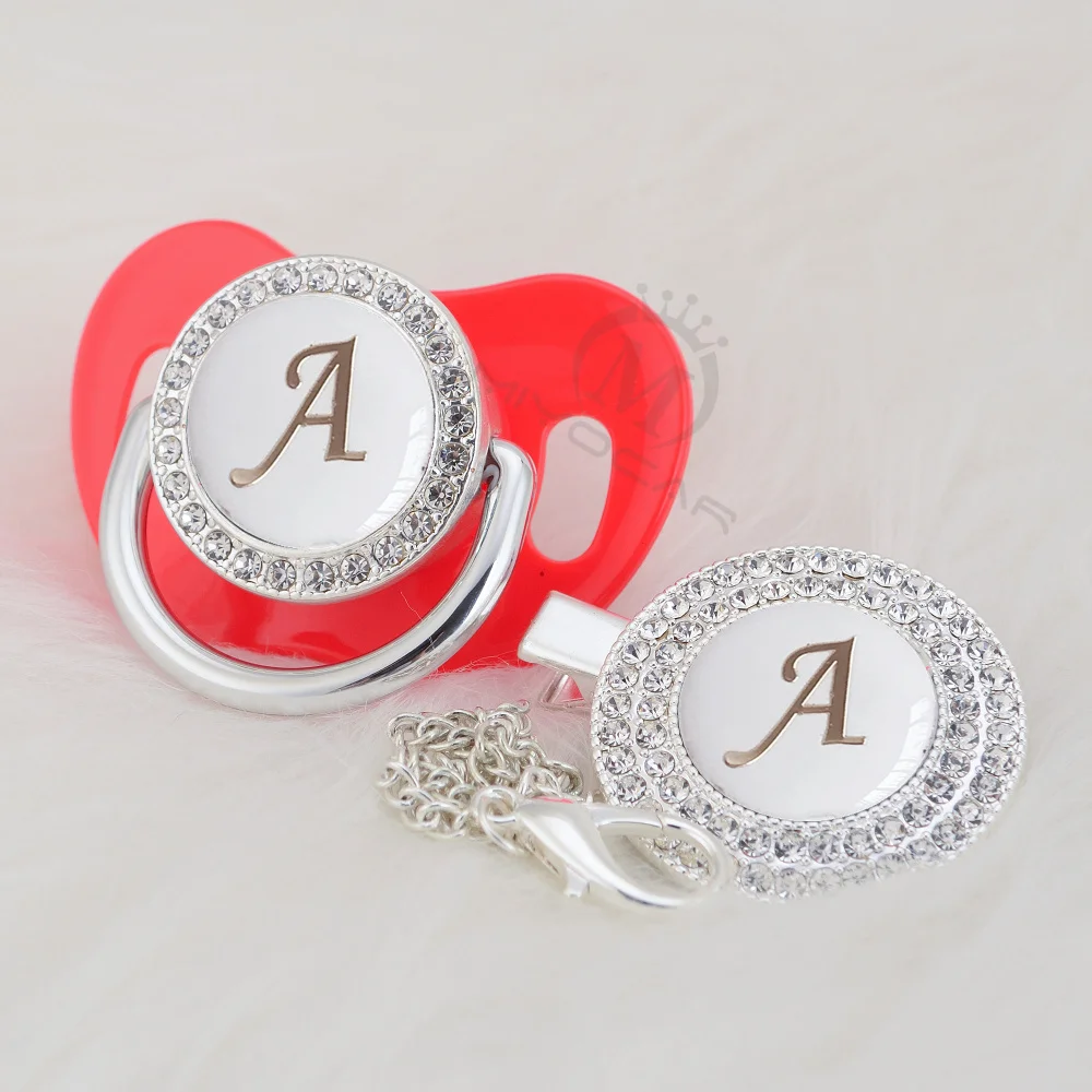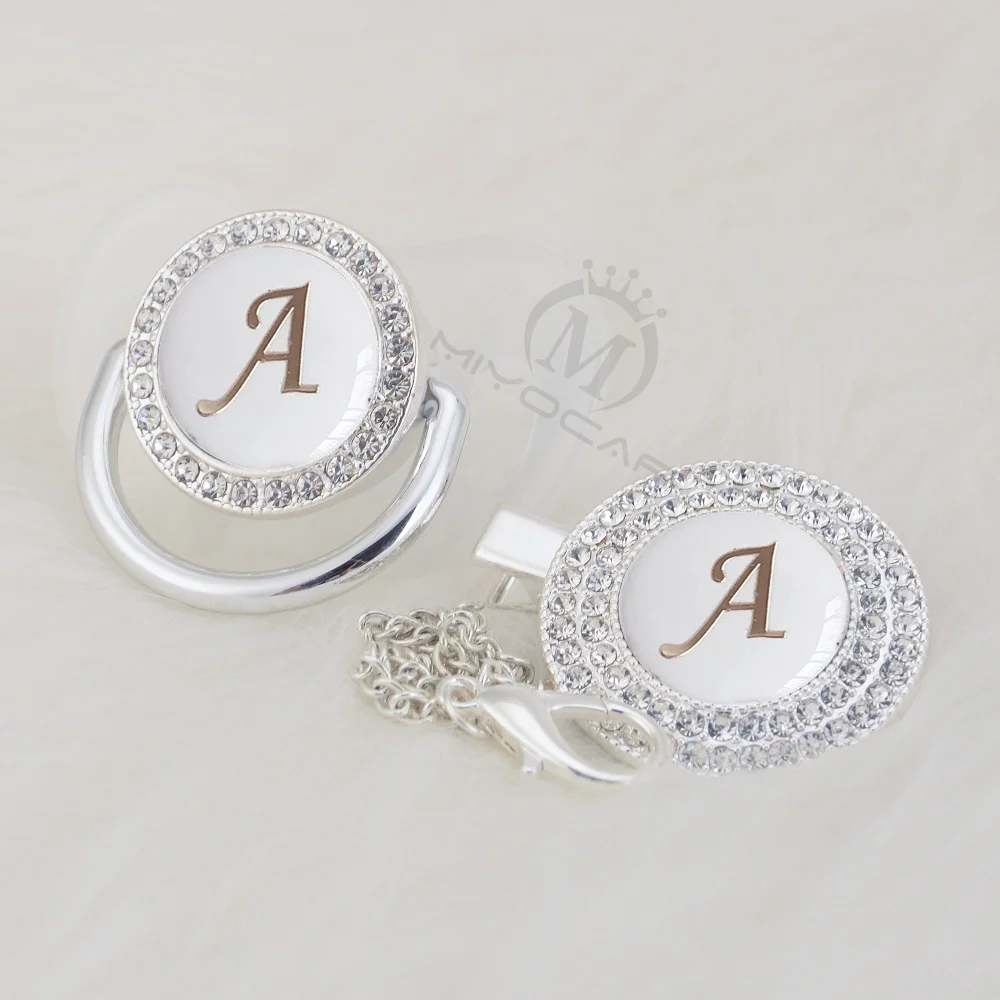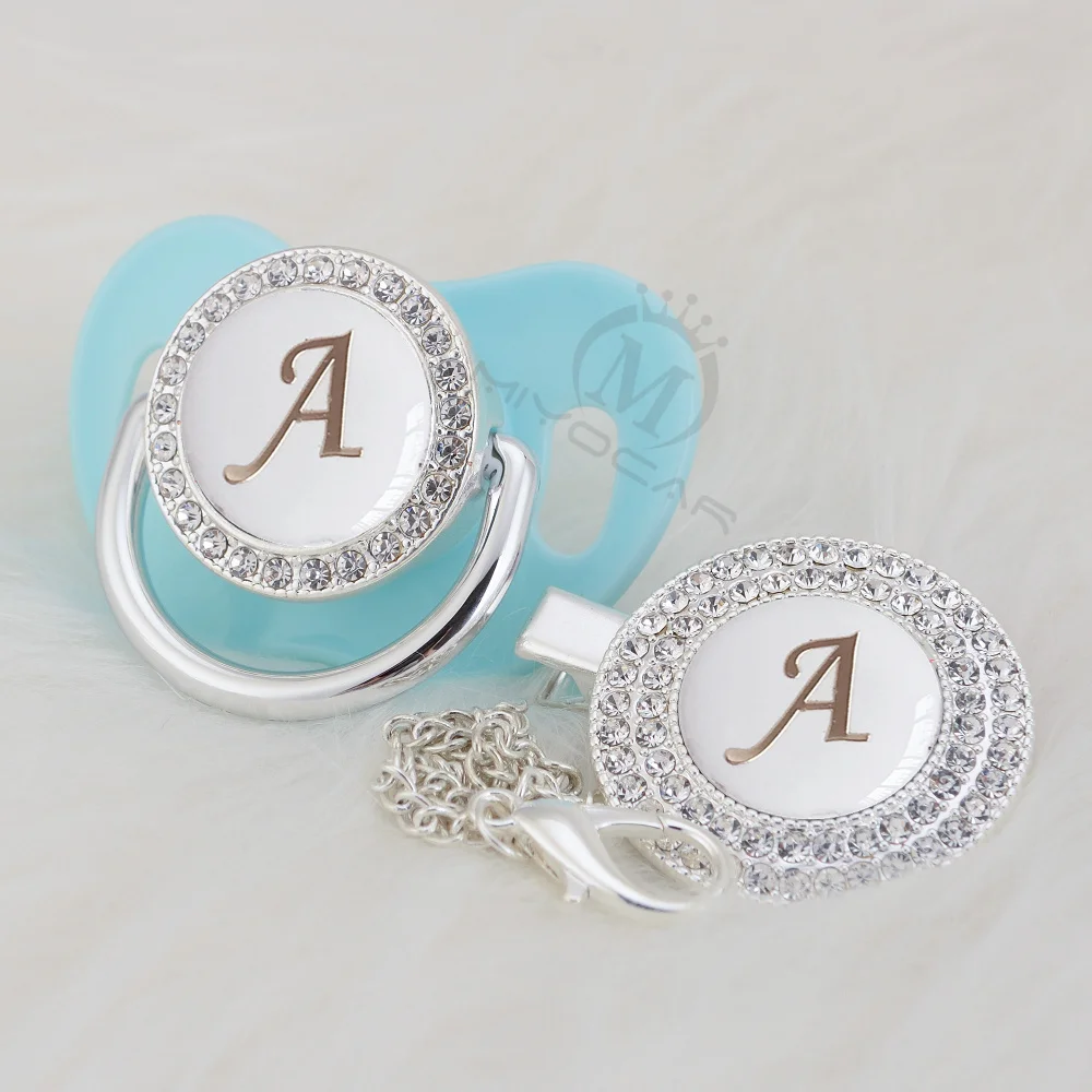 Letter A lovely bling pacifier and pacifier clip BPA free dummy bling unique design LA-1