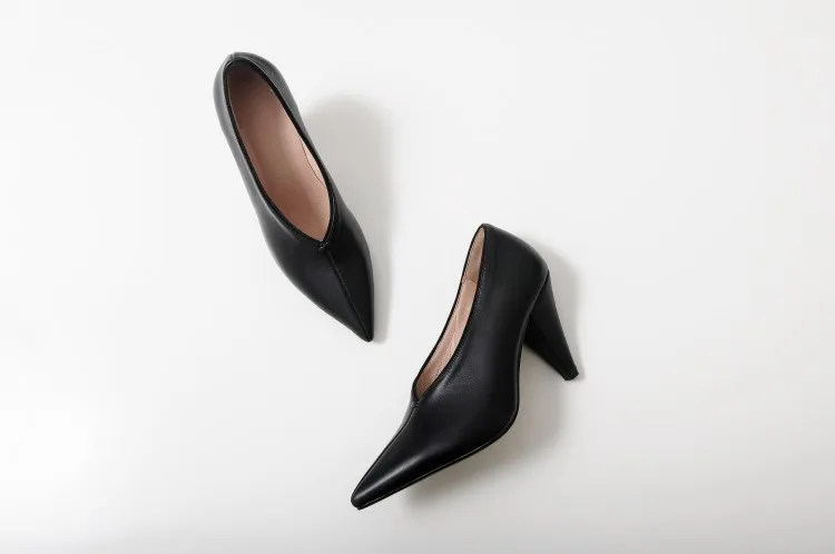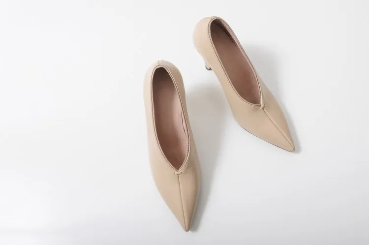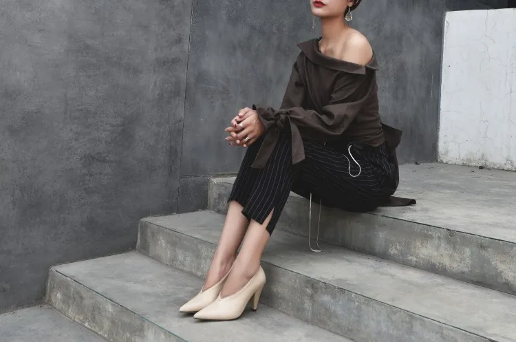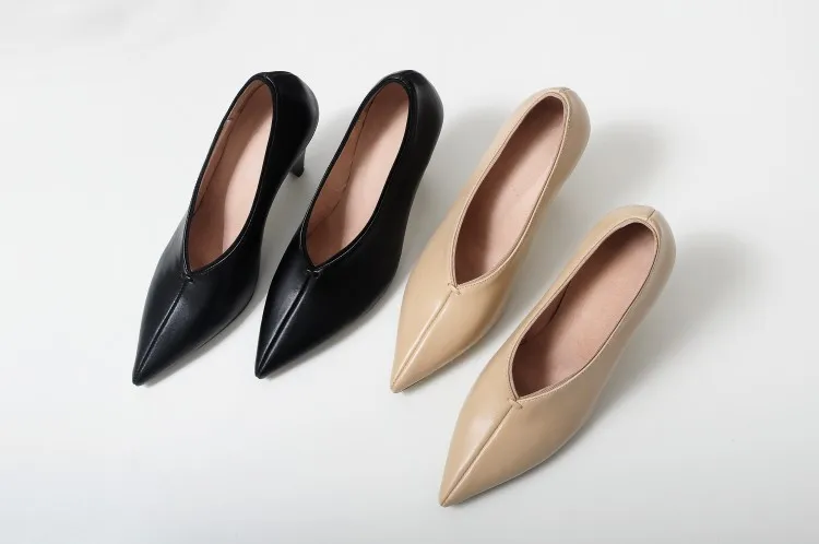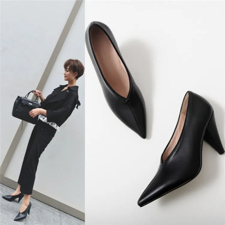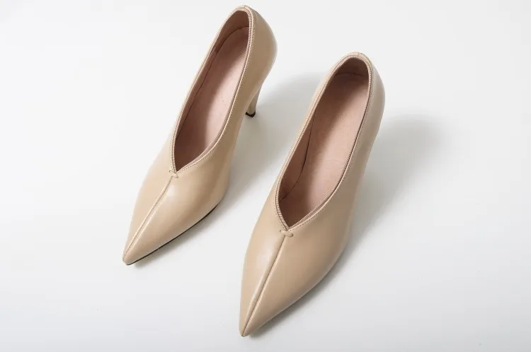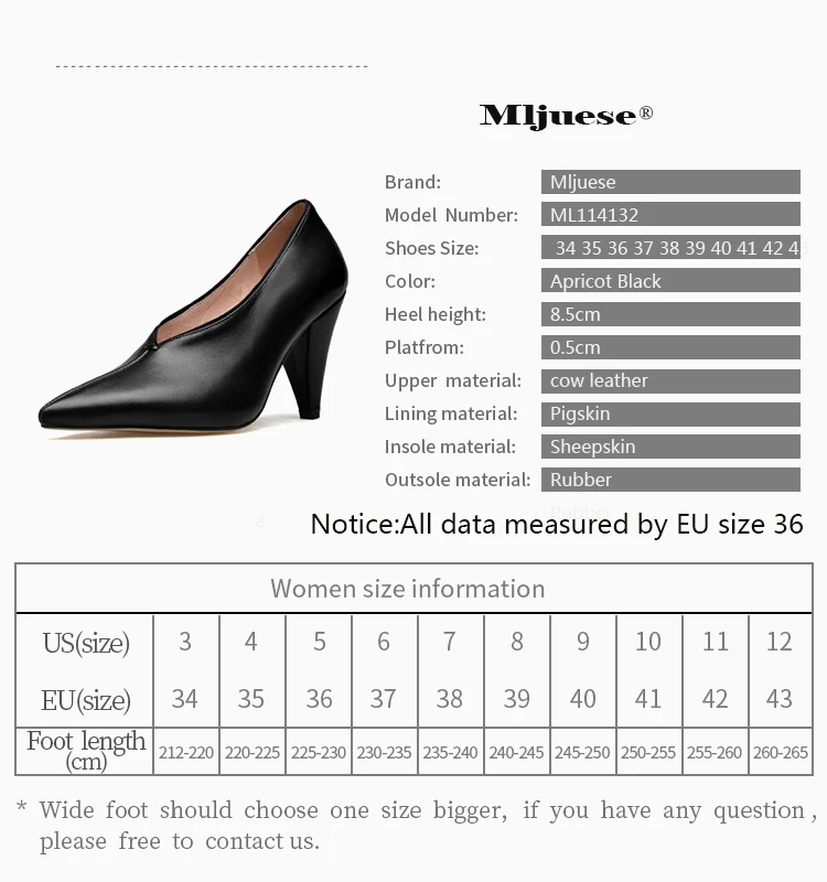 MLJUESE 2018 women pumps cow leather autumn spring slip on pointed toe high heels pumps autumn pumps party dress wedding