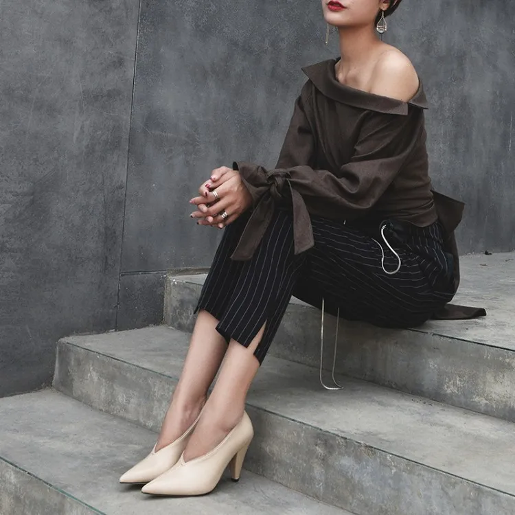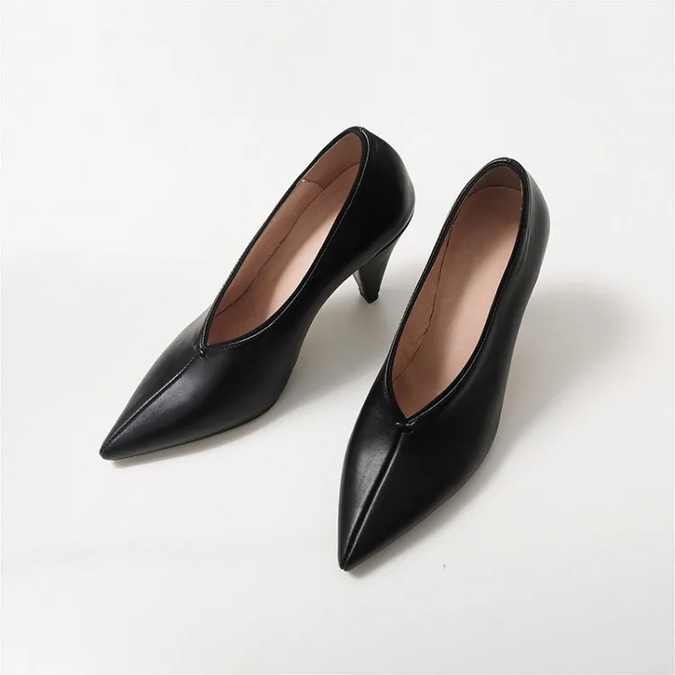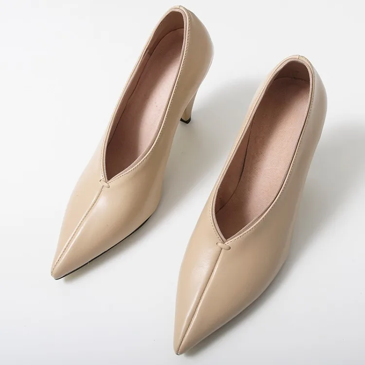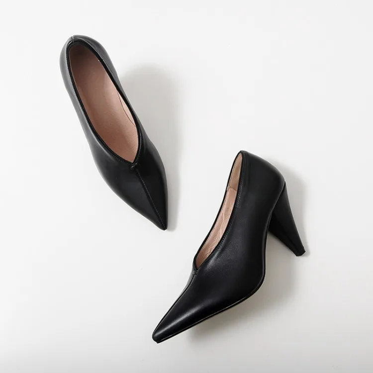 MLJUESE 2018 women pumps cow leather autumn spring slip on pointed toe high heels pumps autumn pumps party dress wedding