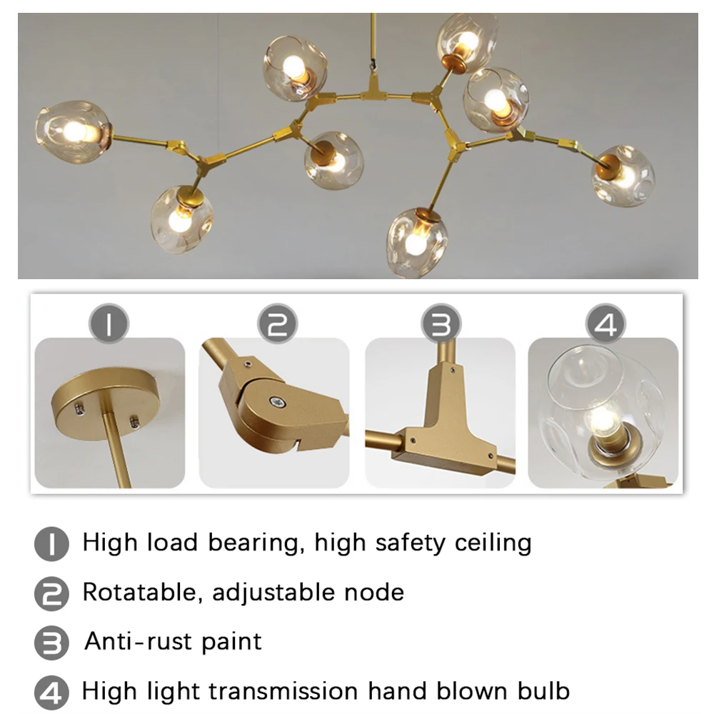 Modern Glass Chandelier Lighting For Pubilc Loft AC 85-265V Max 60W/heats Plated Clear Gray Amber Glass Lampshade Ceiling Lamp