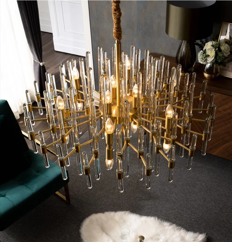Modern LED crystal chandelier Nordic copper chandelier for living room simple dining room lamp luxury villa decoration lamp