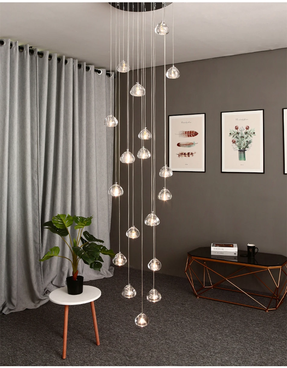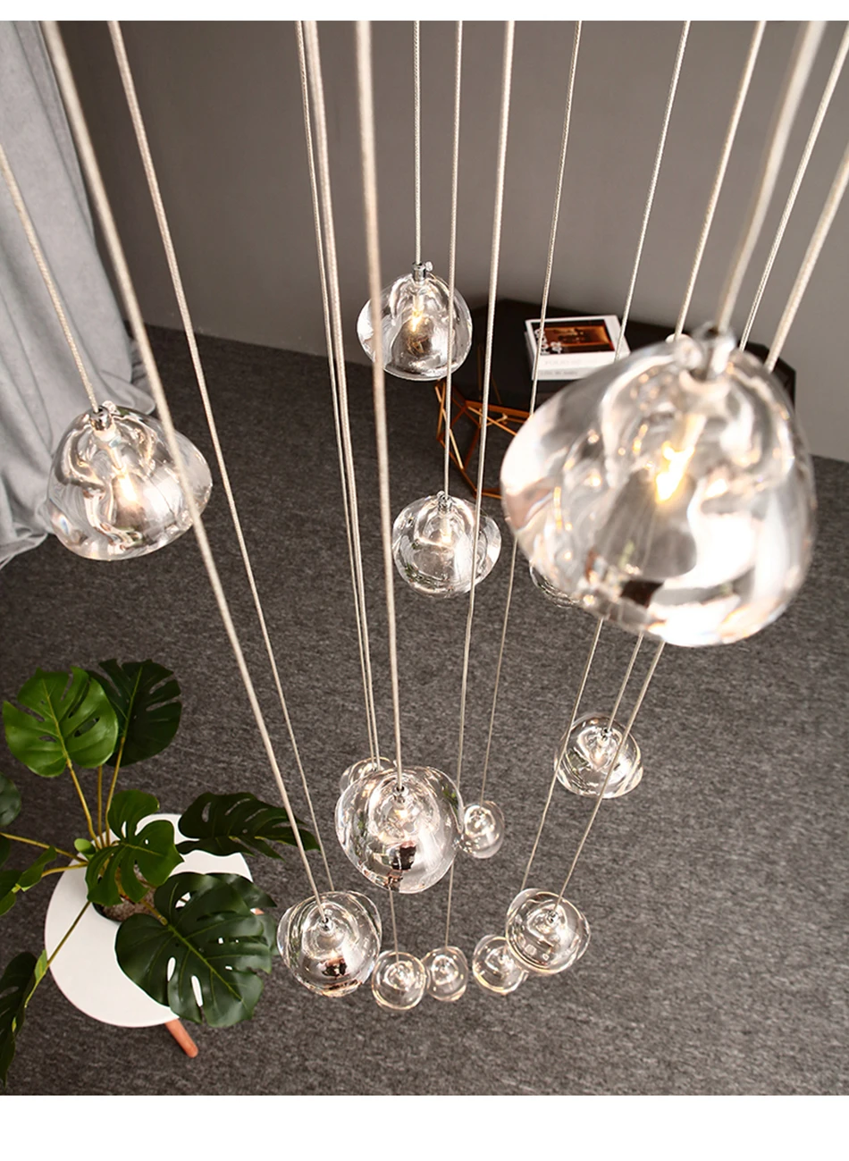 Modern Loft Chandelier Lighting Lustre Cristal Balls Kitchen Villa Living Room Hanging Lamp Staircase Long Crystal Chandeliers