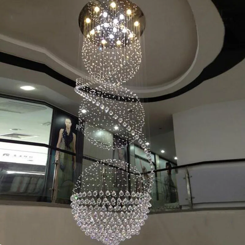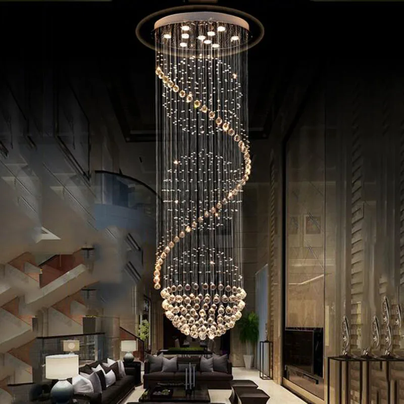 Modern Long LED Spiral Living Crystal Chandeliers Lighting Indoor Fixture for Staircase Stair Lamp Showcase Bedroom Hotel Hall