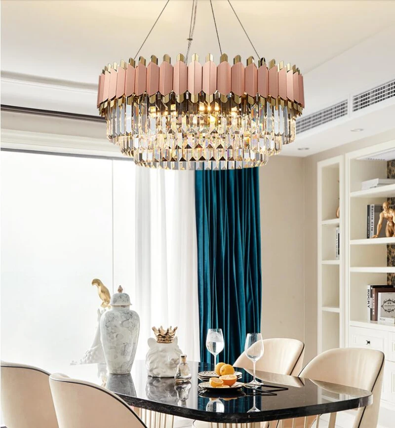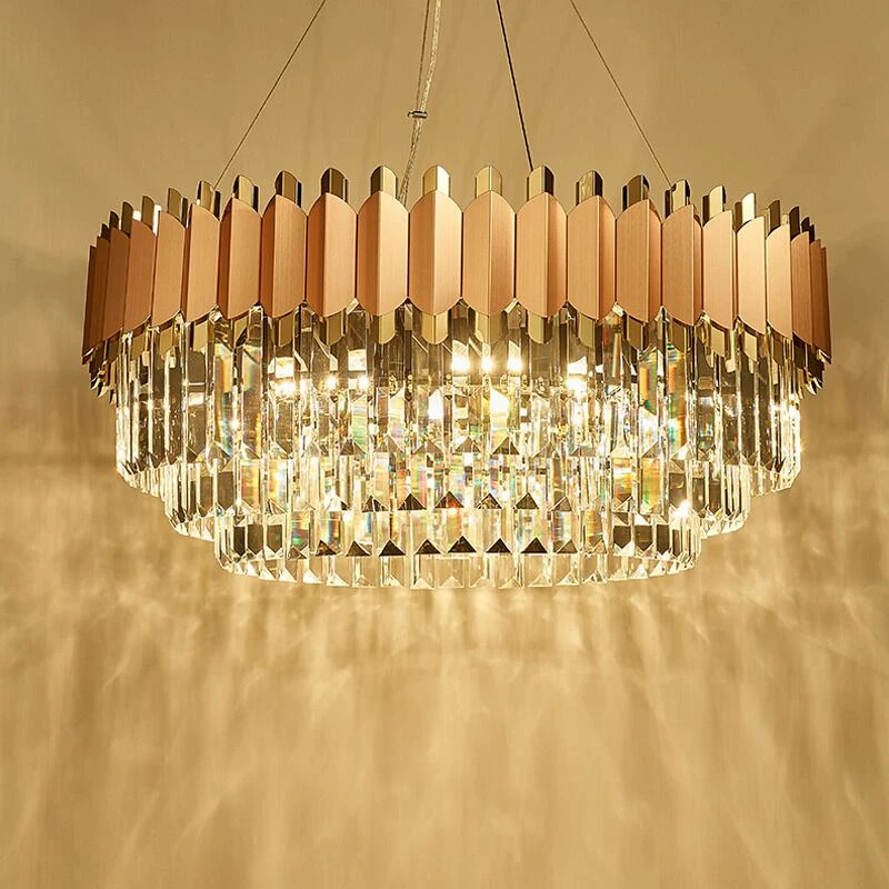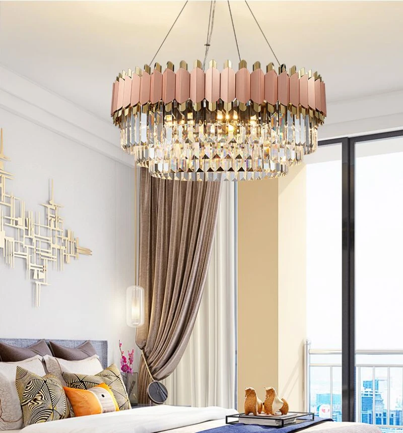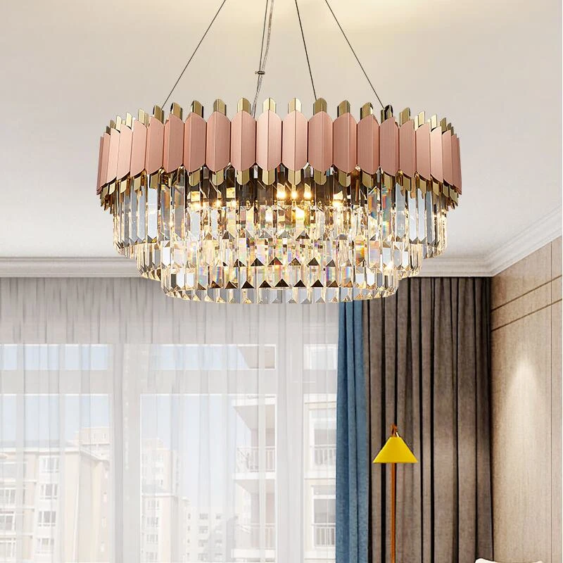 Modern luxury chandelier rose gold club duplex villa designer model room living room round crystal LED wedding decoration lamp
