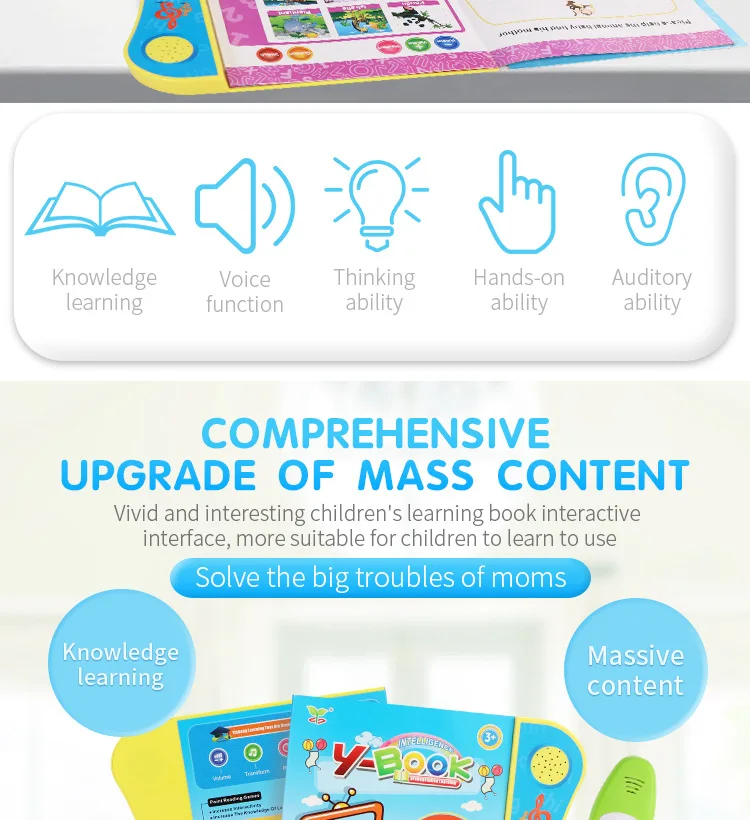 Ability cultivation: hands on brain, grasping, vision, interest cultivation, intelligence development, sensory, emotional, auditory, other ability cultivation, hand eye coordination, parent-child communication, interactive toys