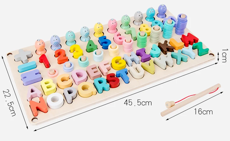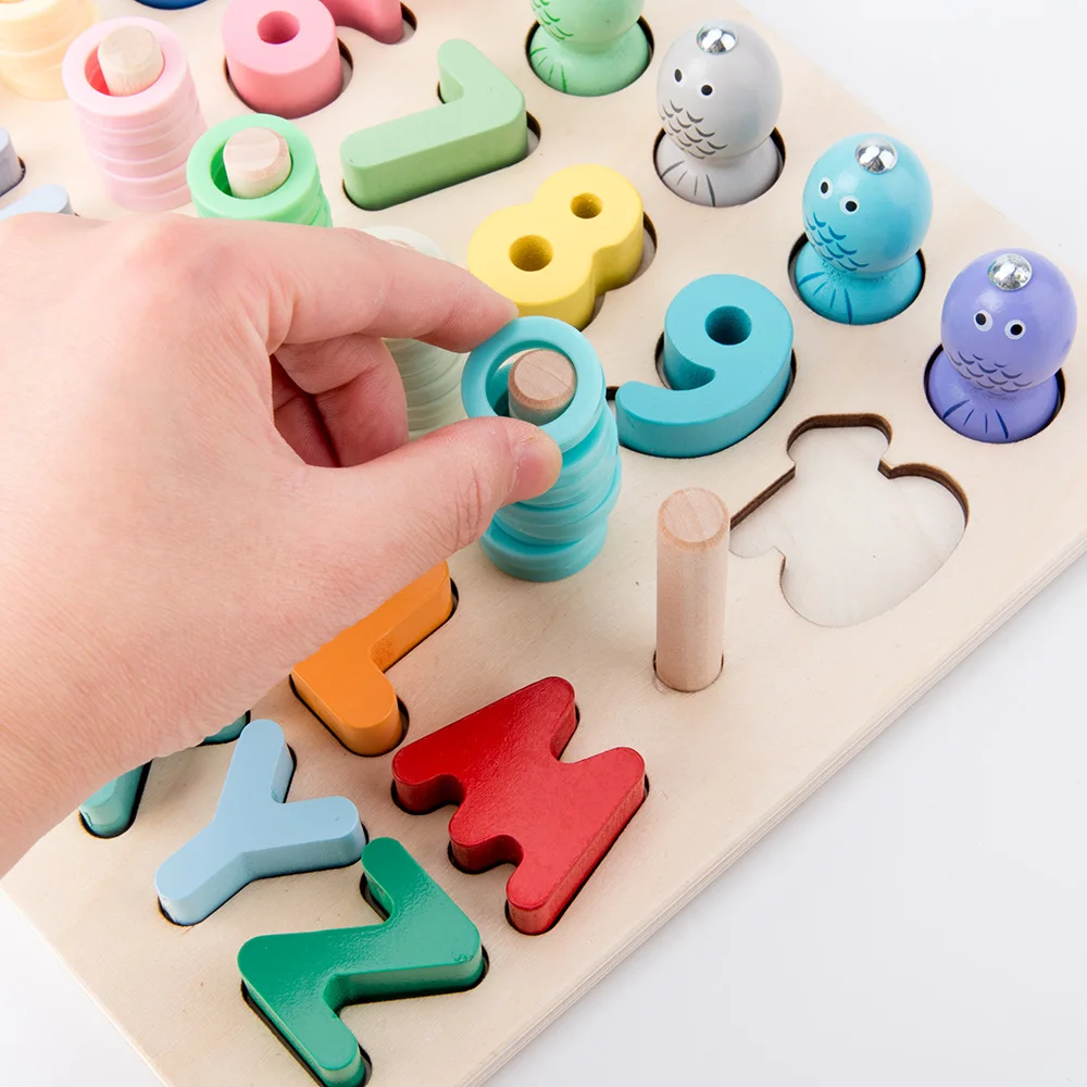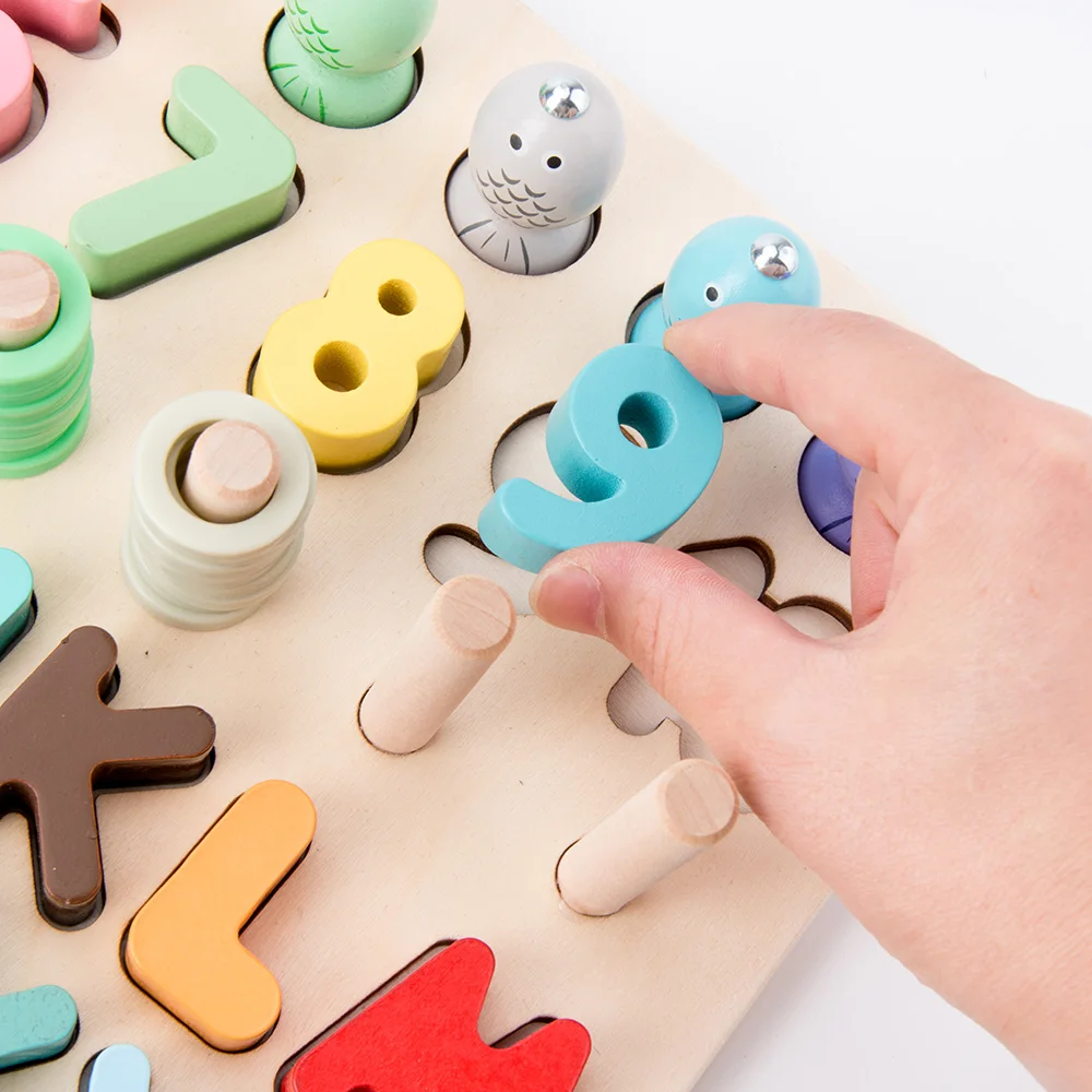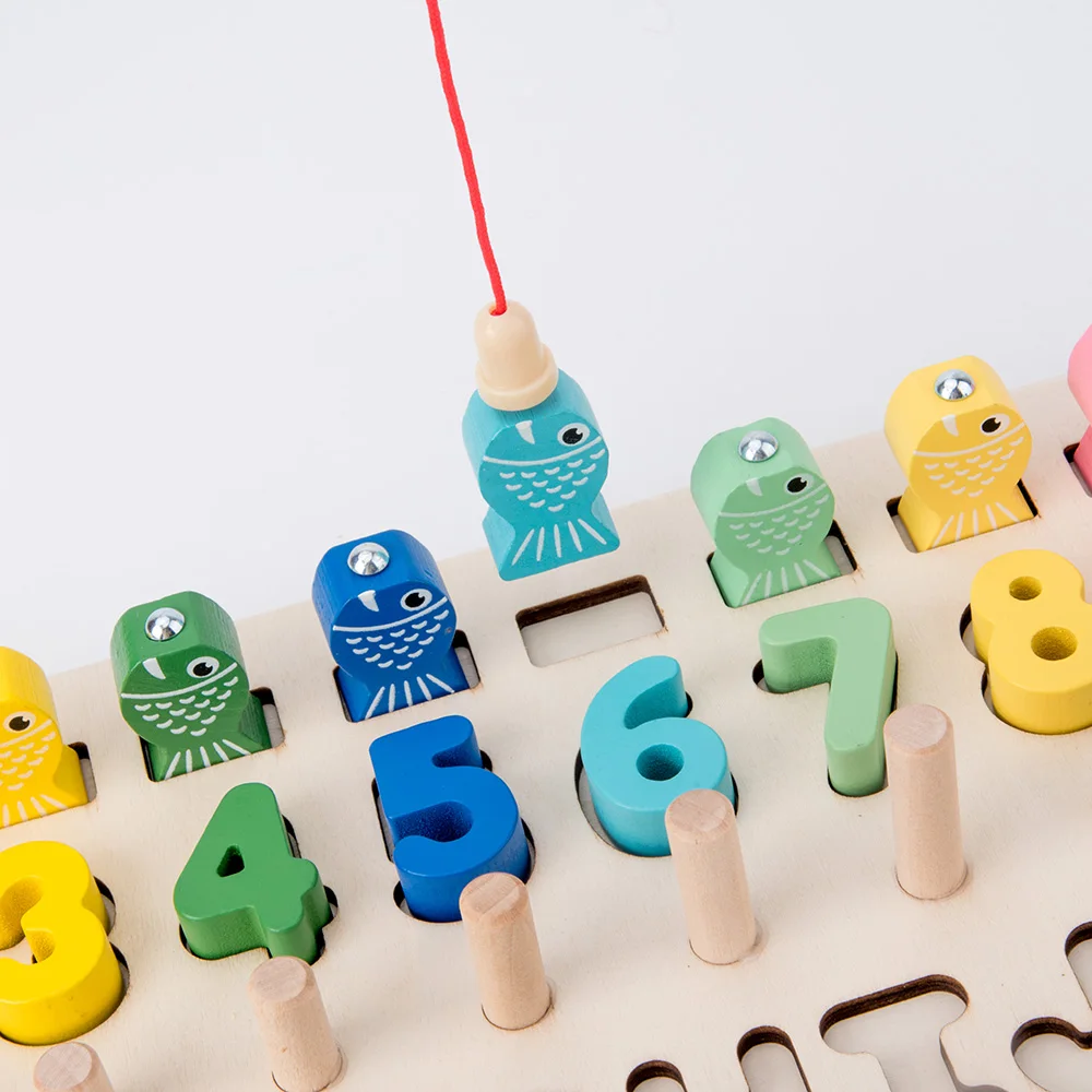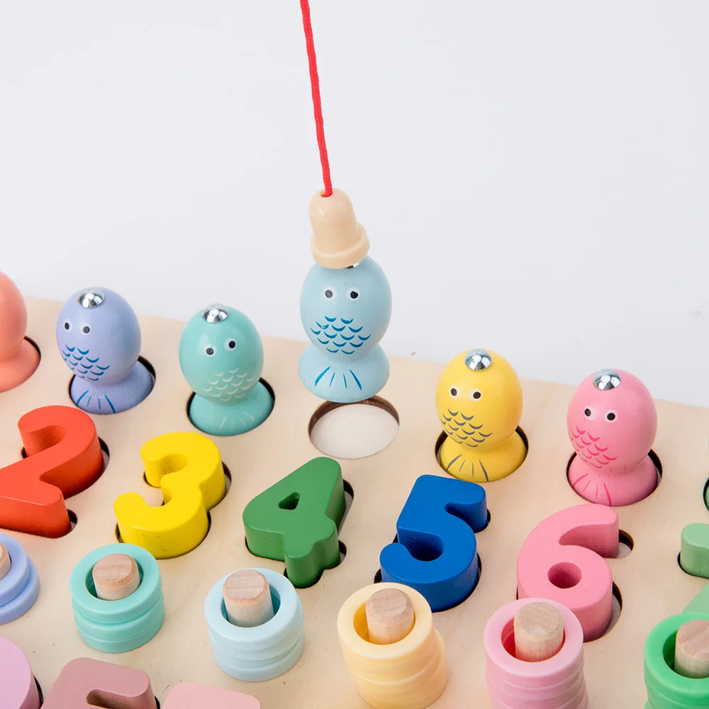 Montessori Educational Wooden Toys Geometric Shape Matching Count Magnetic Fishing Toys Math Early Educational Toys For Children