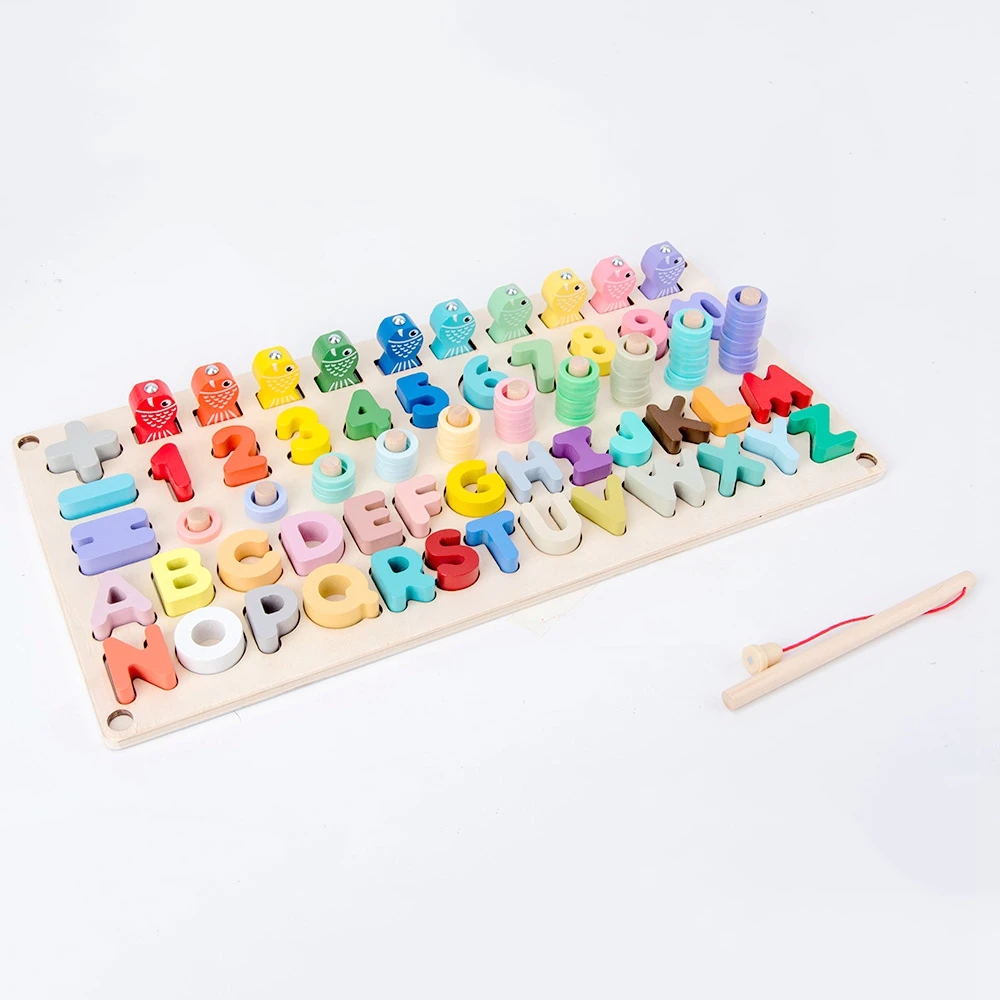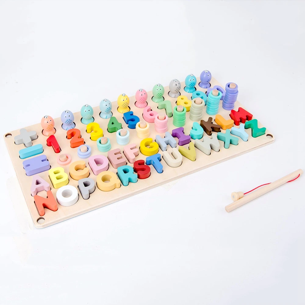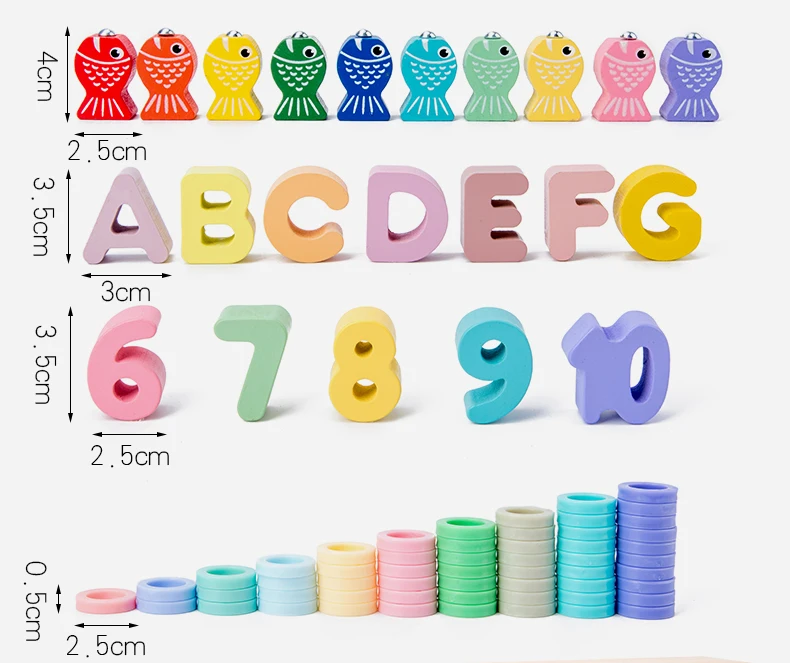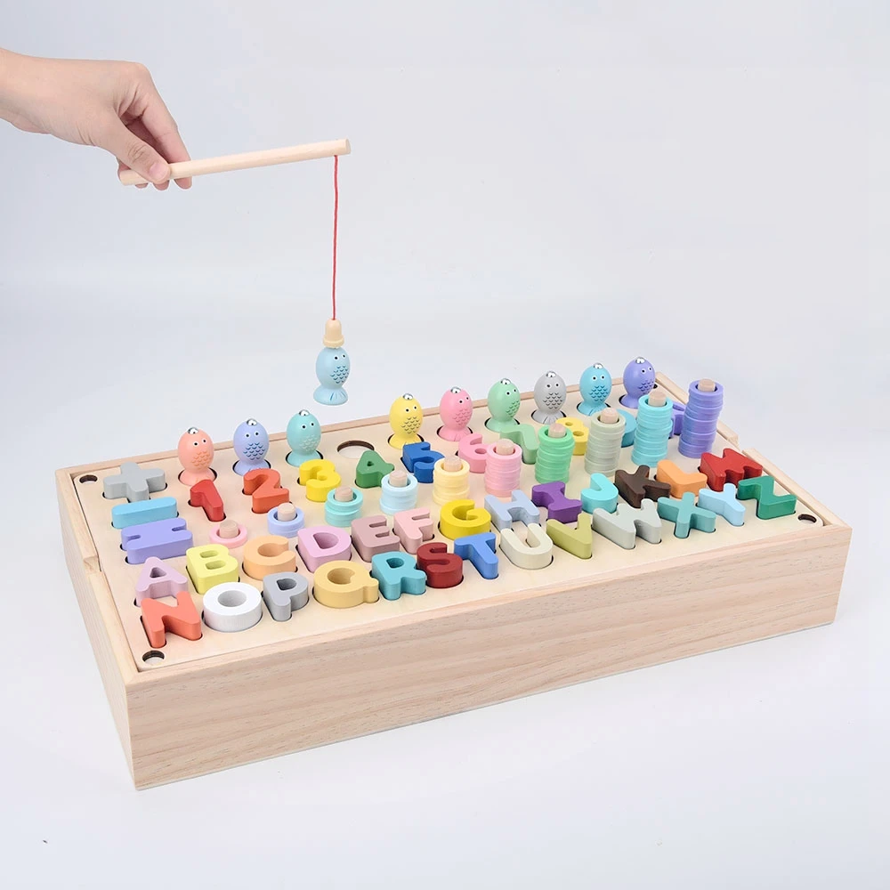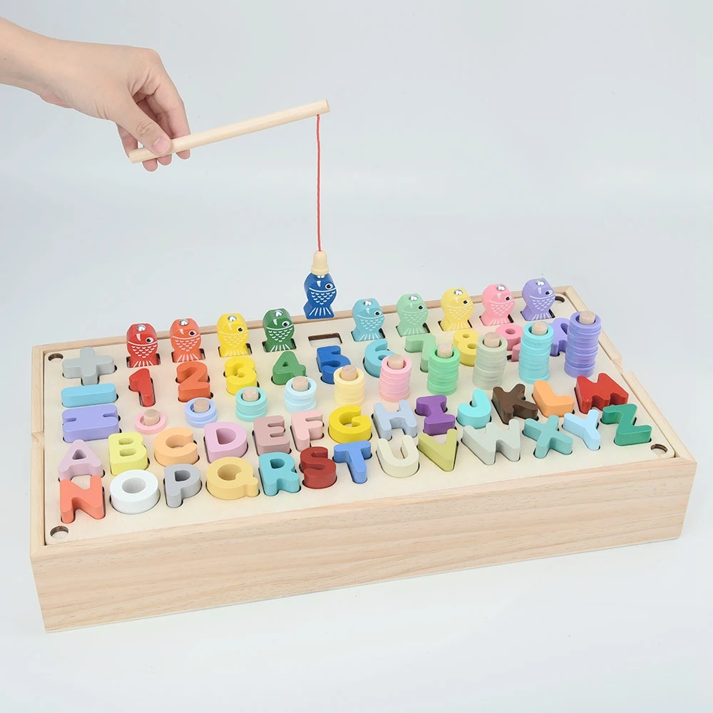 Montessori Educational Wooden Toys Geometric Shape Matching Count Magnetic Fishing Toys Math Early Educational Toys For Children