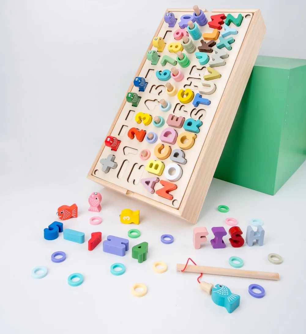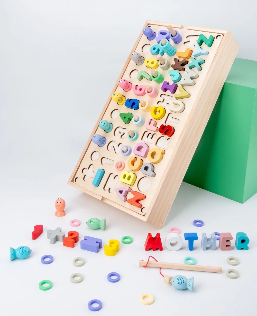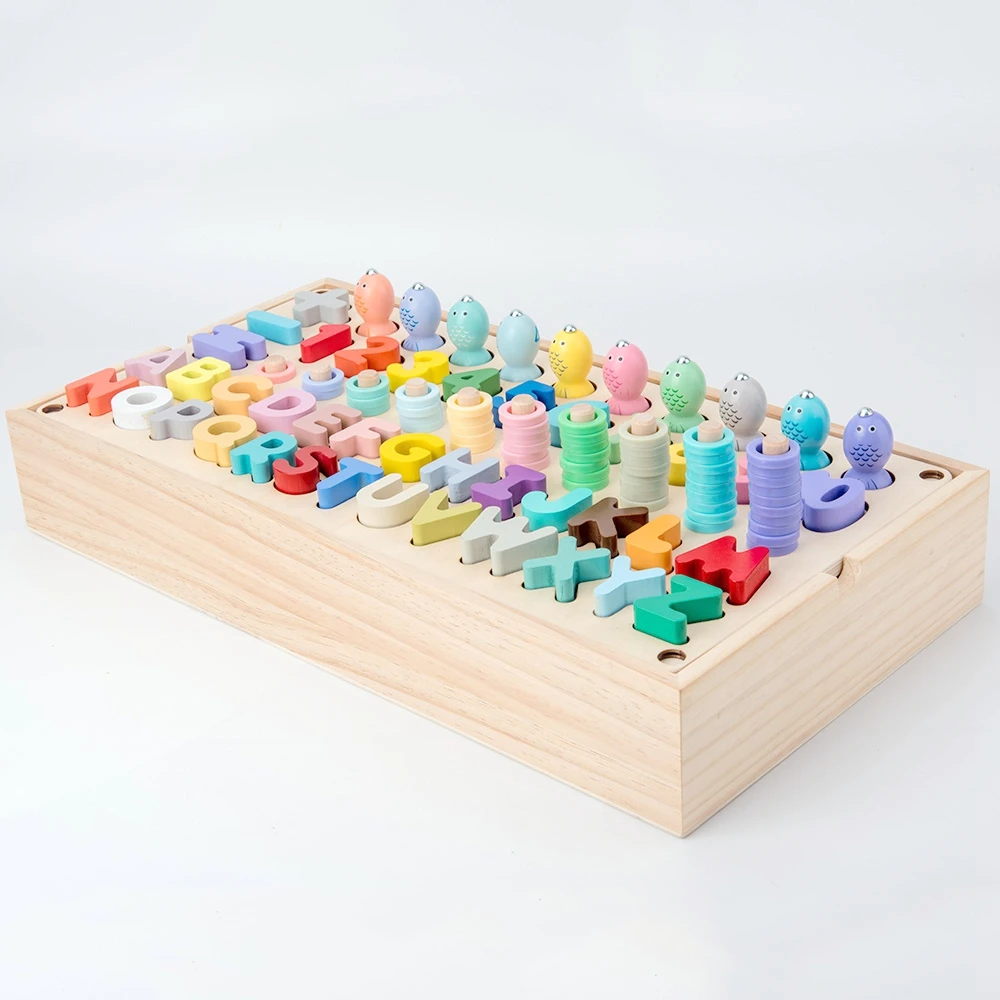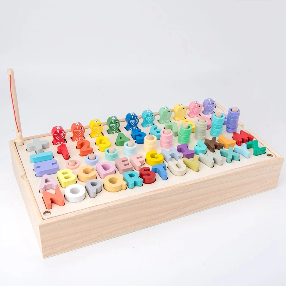 Montessori Educational Wooden Toys Geometric Shape Matching Count Magnetic Fishing Toys Math Early Educational Toys For Children