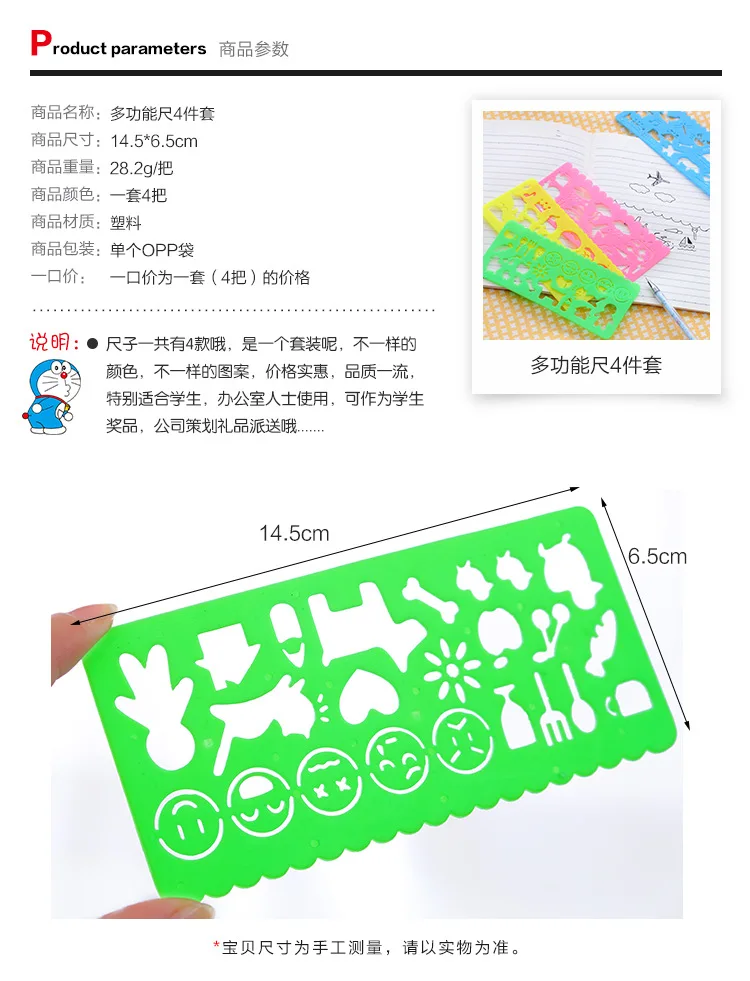 Multifunctional Ruler Student Stationery Cute Drawing Ruler Cartoon Art Painting Ruler Gift for Children Educational Toy 4Pcs
