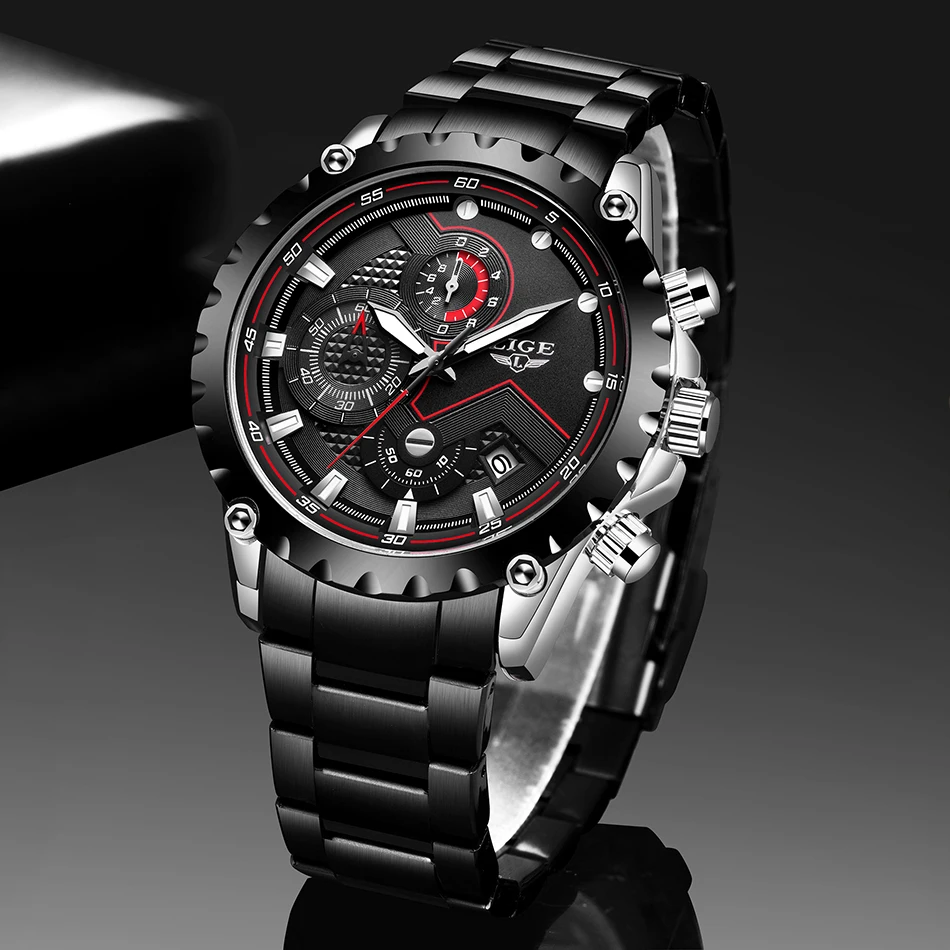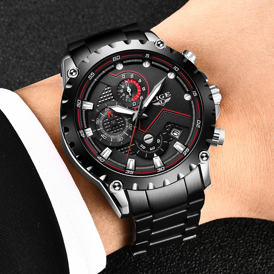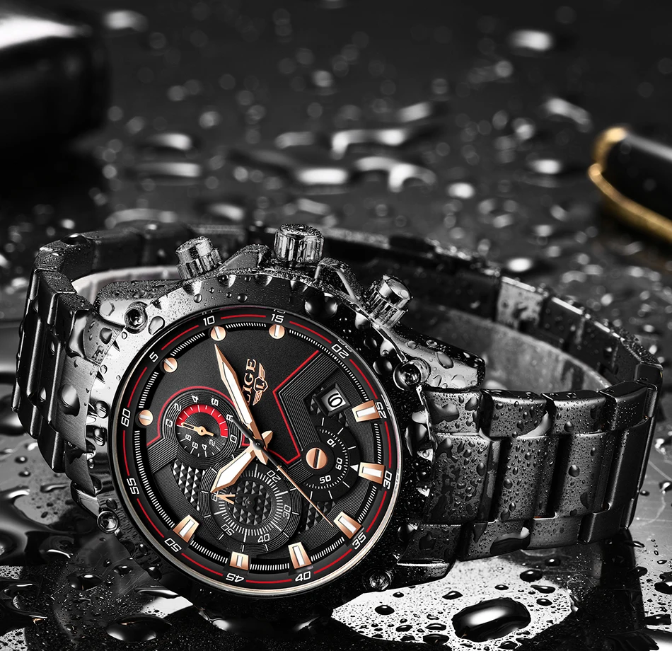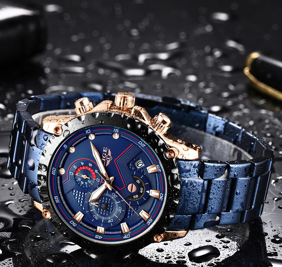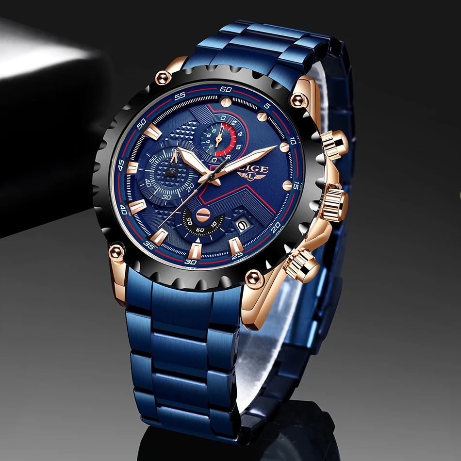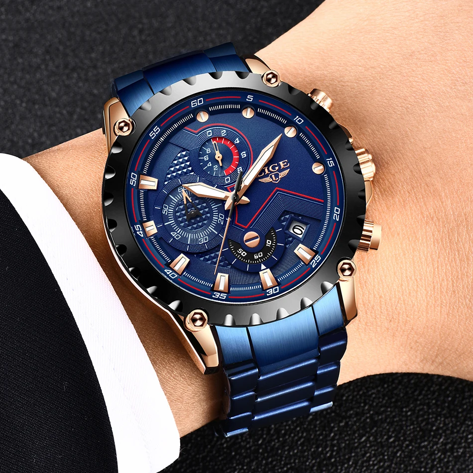New 2020 LIGE Fashion Blue Stainless Steel Mens Watches Top Brand Luxury Waterproof Quartz Watch Men Date Dial Sport Chronograph