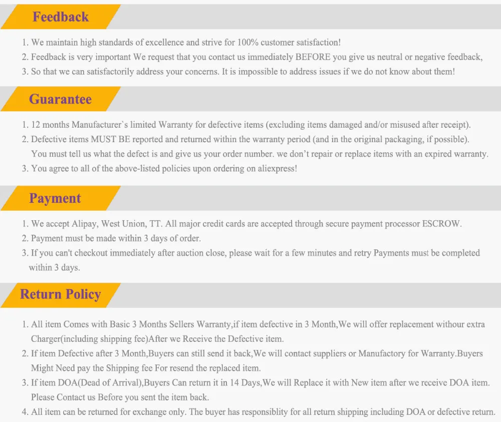 • If you did not receive the product within the guaranteed time( 45 days not including 2-5 day processing) you can request a refund or a reshipment.