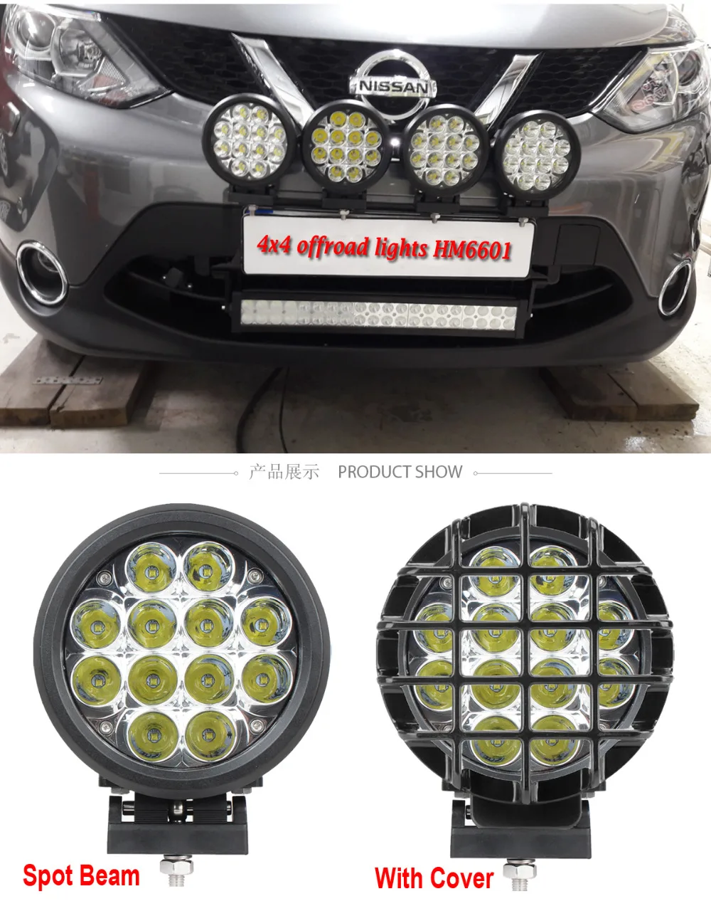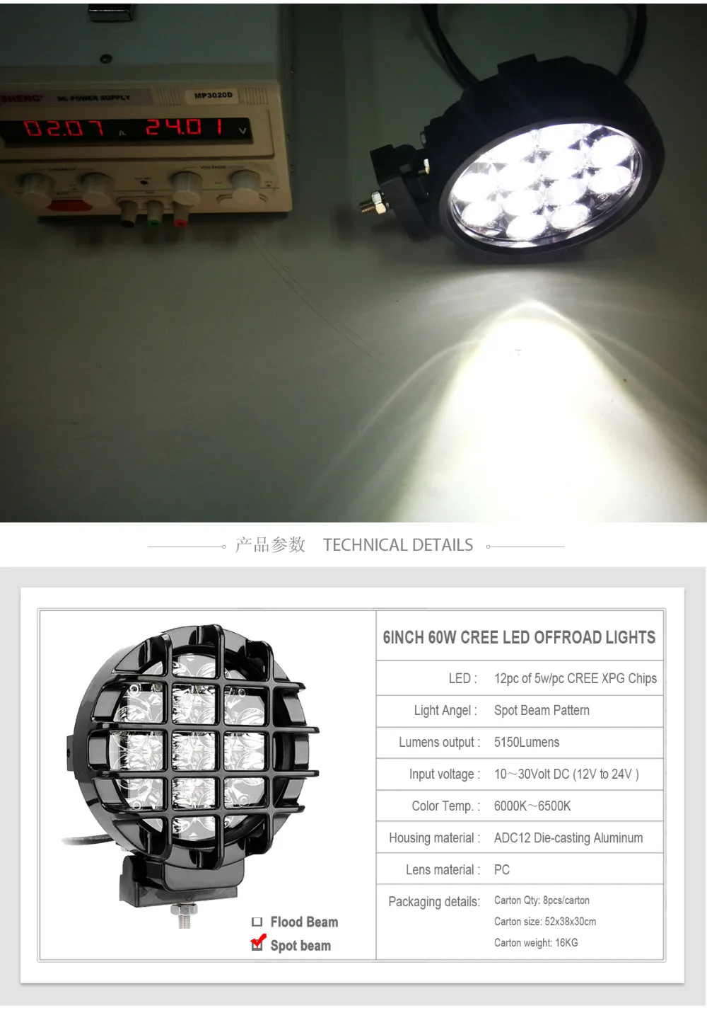 New 6 inch led lights Driving 60W Round Led OffRoad Lights 12V Spotlights HeadLight 4×4 Truck+ Protect Cover 12Leds x1pc