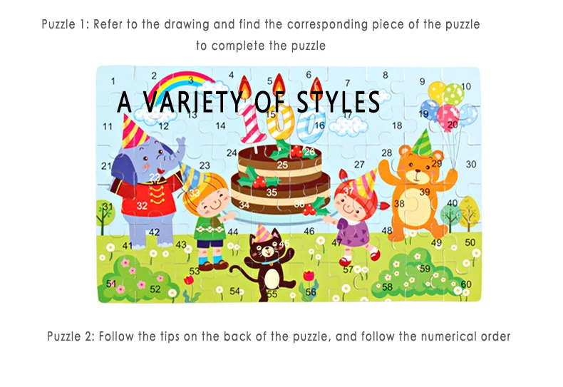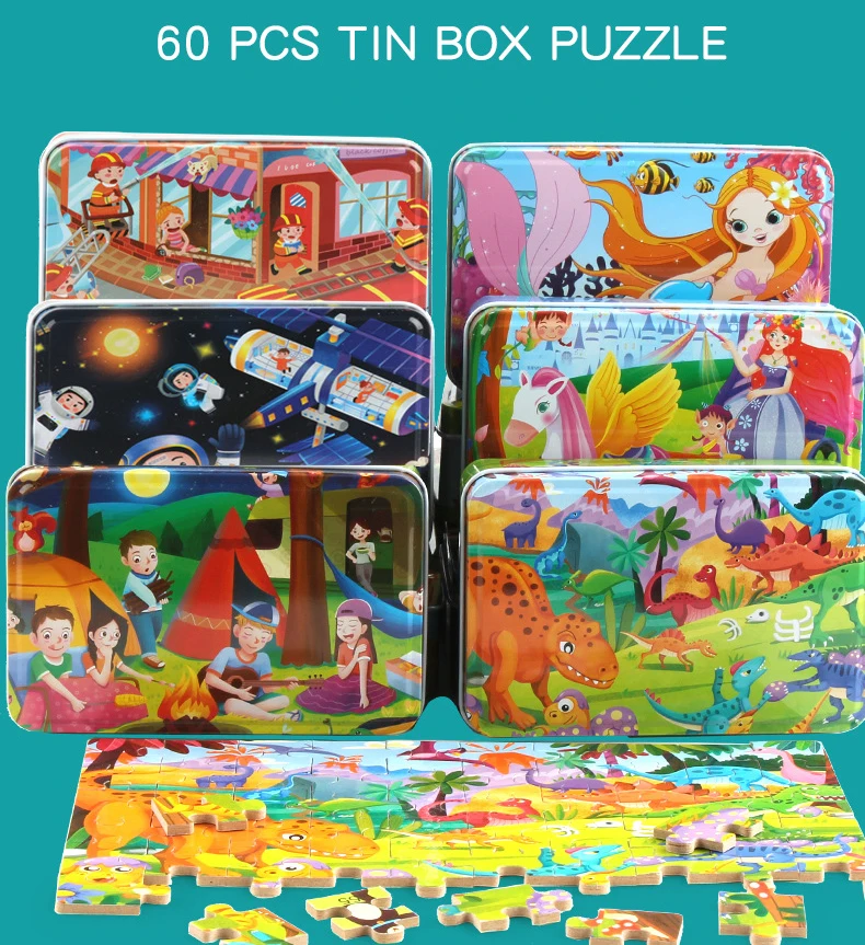 60 Pieces Wooden Puzzle Kids Toy Cartoon Animal Wood Jigsaw Puzzles Child Early Educational Learning Toys Enlightenment toy